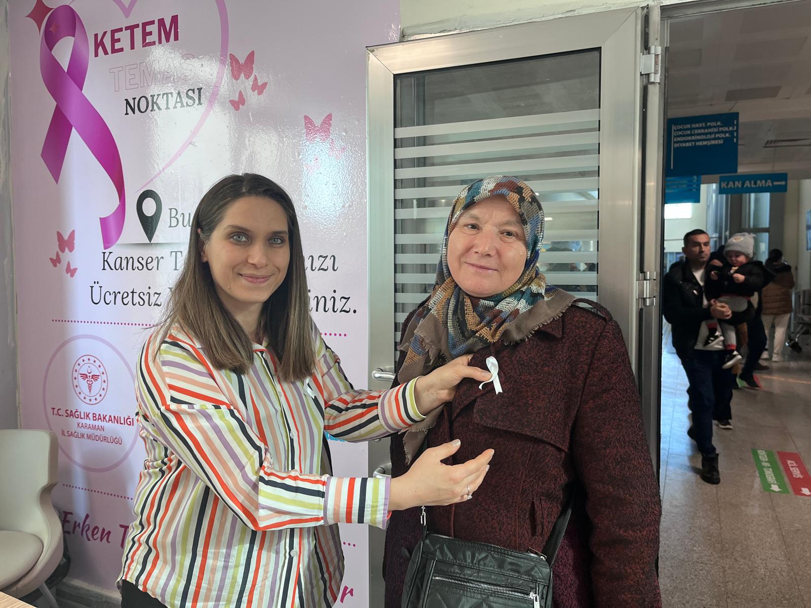 Karaman İl Sağlık Müdürlüğü ve Karamanoğlu Mehmetbey Üniversitesi Tıp Fakültesi iş birliği ile düzenlenen Kasım Ayı Akciğer Kanseri Farkındalık Ayı etkinlikleri kapsamında Karaman Eğitim ve Araştırma Hastanesi KETEM Temas Noktasında stant kurulmuştur. Akciğer Kanseri risk faktörleri ve belirtileri hakkında bilgilendirme yapılmış, standımıza gelen vatandaşlarımıza broşür verilmiştir. Farkındalık ayı vesilesiyle vatandaşlarımızı, akciğer kanserinin bir adım önünde olmaları ve sağlıklarını korumaları için tütün ve tütün ürünlerini kullanmamaya ve sağlıklı yaşam alışkanlıklarını benimsemeye davet ediyor, sağlıklı günler diliyoruz.'' ifadeleri kullanıldı