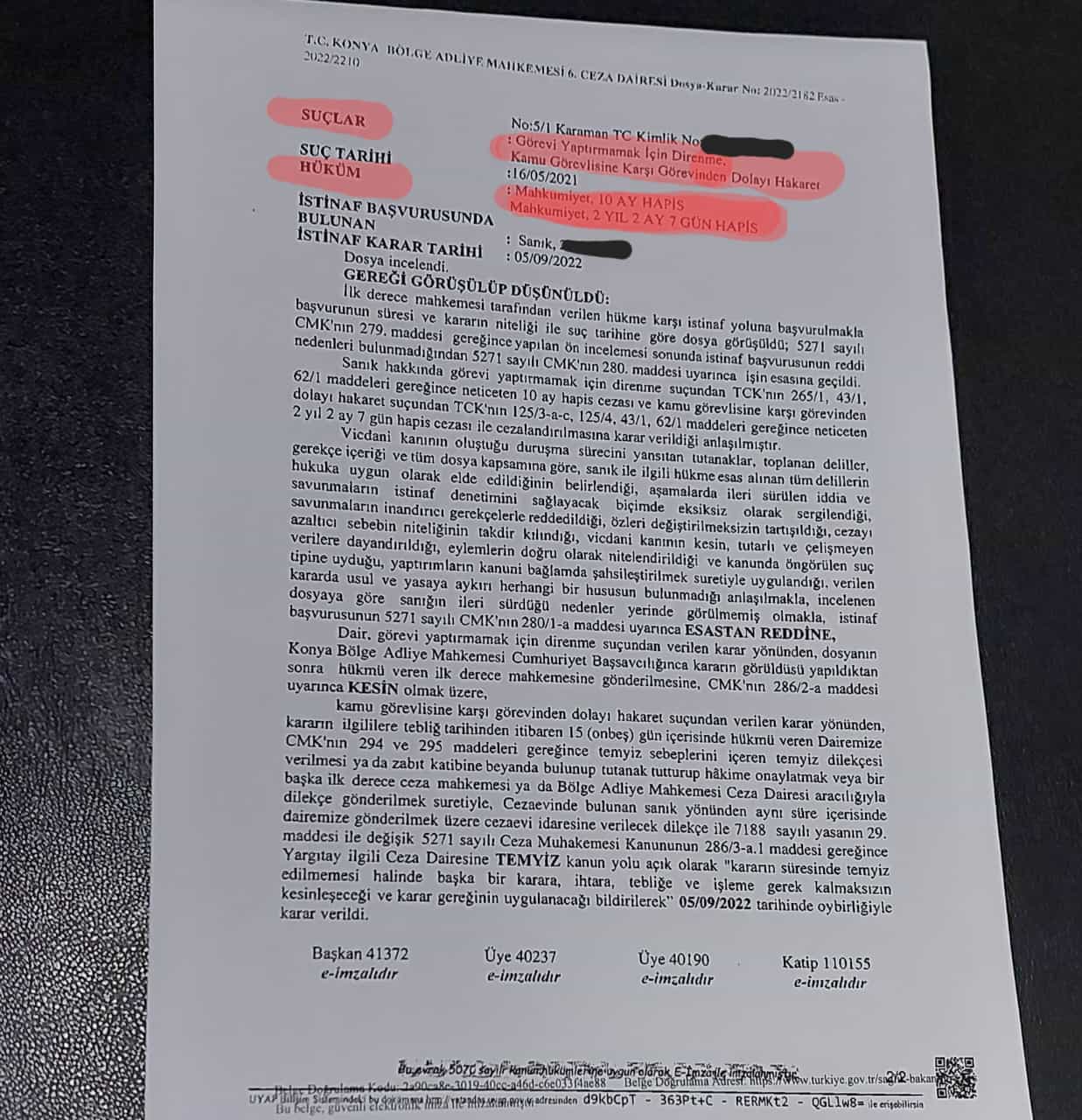 Olay 16.05.2021 tarihinde Karaman Eğitim ve Araştırma Hastanesi Acilin de gece sularında alkollü bir şekilde eşiyle beraber gelen şahış, alkolün etkisiyle eşine muayne ettirmek isterken, bağırıp sesli bir şekilde etrafı rahatsız etmeye başlamış, orada bulunan güvenliklik görevlileri de şahısı uyararak sessiz olmalarını diger hasta ve yakınlarını rahatsız etmemelerini söylemiş, alkolünde etkisiyle güvenlik görevlilerine hakaret ve küfürler etmeye başlamış, güvenlik görevlilerinin tüm ikaz ve uyarılarına rağmen, kamu düzenini bozduğundan dolayı hastane polisine durum bildirilmiş, polis eşliğinde hastane dışına çıkarılmaya çalışılmış, buna da direnen polis memurune tekme atamaya kalkmış, hakaret ve küfürlerine devam ederek karakola götürülmüş, hastane güvenligi ve polis memuru bu olay üzerine, beyaz kod verilmiş, şikayetci olunmuş.16.05.2021 Tarihinden itibaren hukuk mücadelesini sürdüren Güvenlik Görevlileri ve Polis memuru Yerel Mahkeme'nin, Görevi Yaptırmamak İçin Direnmeden 10 Ay Hapis, Kamu Görevlisine Karşı Görevinden Dolayı Hakaret 2 Yıl 2 Ay 7 Gün Hapis Cezası vermiş, Sanık sahış Üst Mahkeme İstinaf Mahkemesine itirazda bulunmuş, İstinaf Mahkemesi Esastan Reddine Karar vererek cezayı onamış ve karar keşinleşmiş.İşini hakkıyla yapmaya çalıştığı için, hakaret ve direnme gibi olumsuz durumla karşılaşan Karaman Eğitim ve Araştırma Hastanesi Güvenlik Görevlileri başta olmak üzere tüm Sağlıkçılara Karamanhaberal Ailesi olarak geçiş olsun diyor, Sağlıkta Şiddeti Kınıyor ve Hayır diyoruz !.