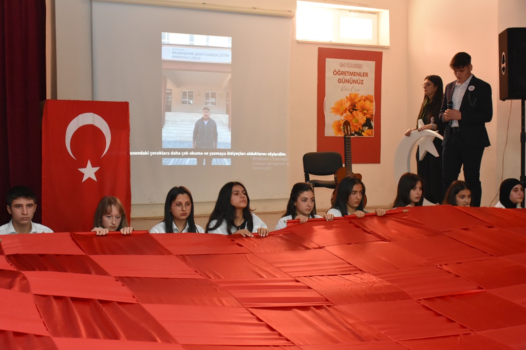 Kutlama programına, İl Millî Eğitim Müdürü Mehmet Çalışkan, Hanımefendi Hatice Sarıibrahim, Şehit Öğretmen Hamza Çetin’in ailesi, Millî Eğitim Şube Müdürü Aziz Demir, öğretmenler ve öğrenciler katıldı.