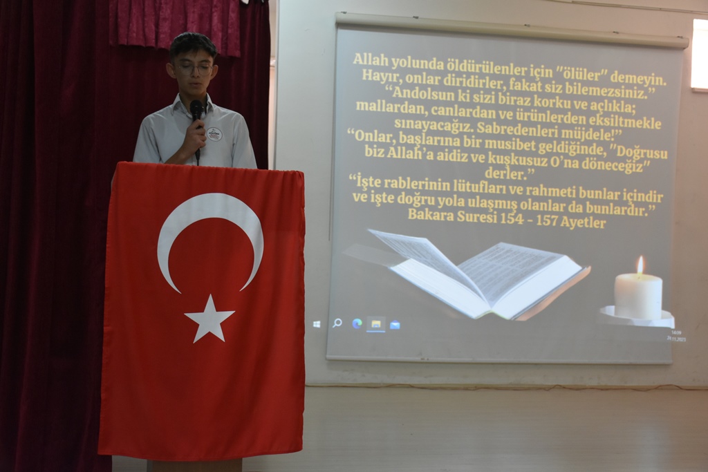 Program, saygı duruşu ve İstiklâl Marşı’nın okumasıyla başladı. Günün anlam ve önemini belirten konuşmayı Başakşehir Şehit Hamza Çetin Anadolu Lisesi Tarih Öğretmeni Abdülkadir Şeker yaptı.