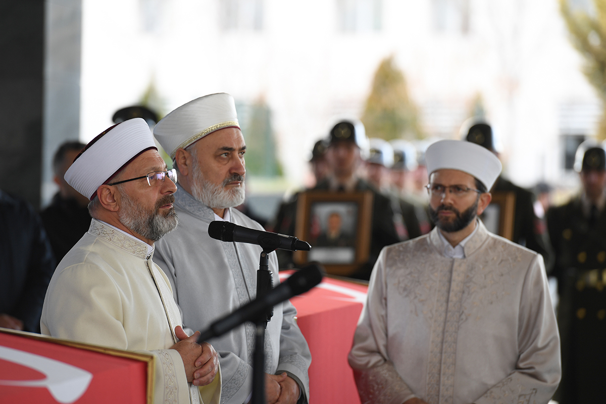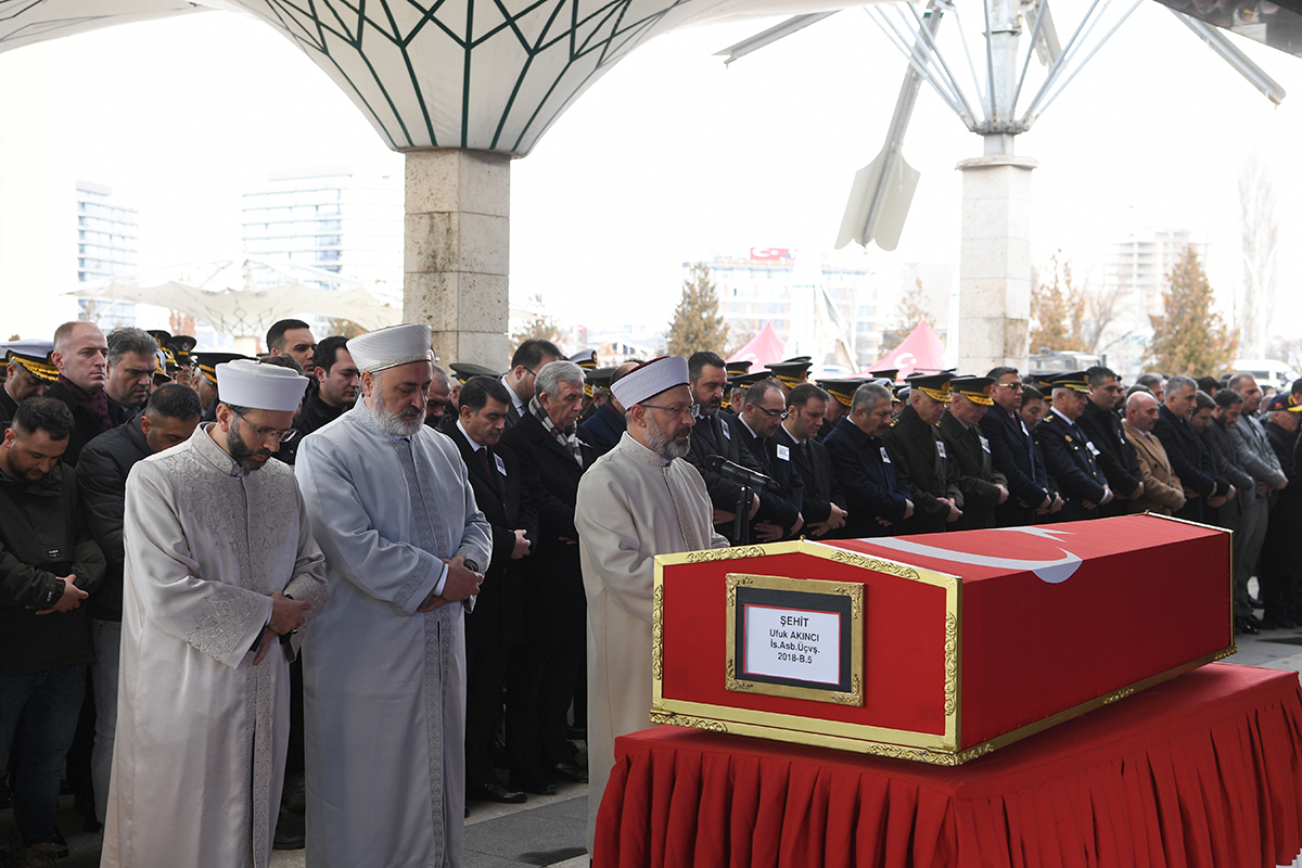 Ankara Ahmet Hamdi Akseki Camii’nde ikindi namazını müteakip kılınan cenaze namazı öncesi konuşan Diyanet İşleri Başkanı Erbaş, “Millet olarak hepimizin başı sağ olsun. Musallada bulunan Şehit Astsubay Üstçavuş Ufuk Akıncı yavrumuz, kardeşimiz, en kıymetli olan canını Allah yolunda, vatan uğrunda feda etti.” dedi.