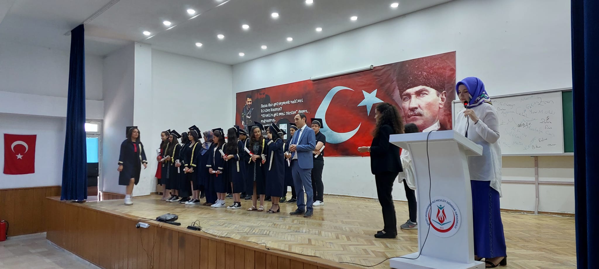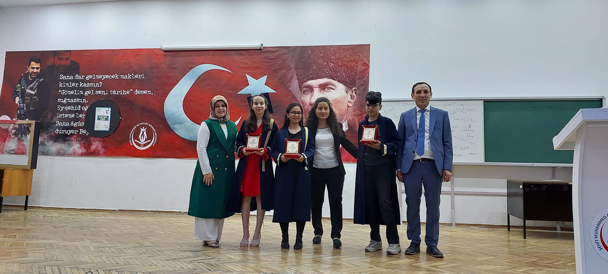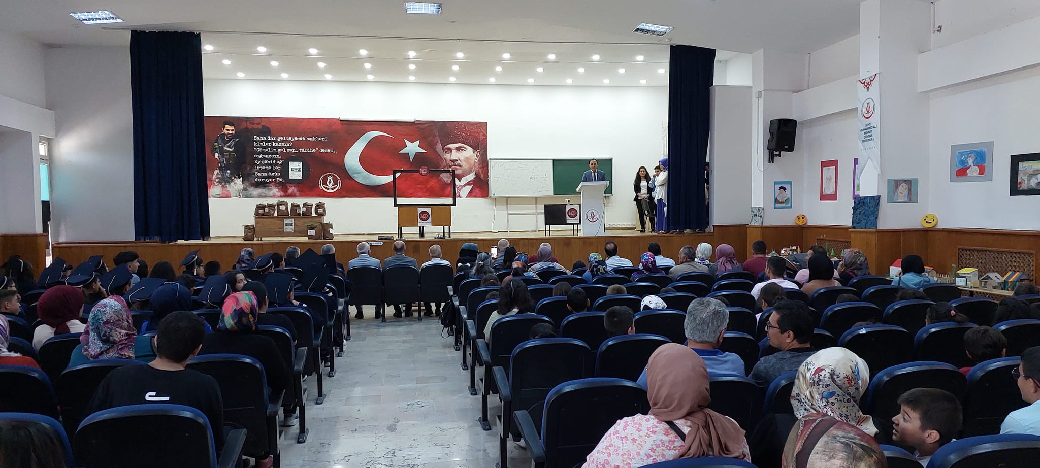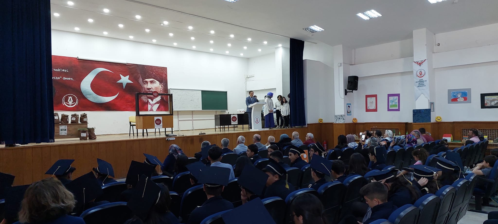 Şehit Muhammed Ali Mevlüt Dündar Ortaokulu, Depremzedelere Yardım Kermesi, Mezuniyet ve Kep Atma Töreni, Okuldan Haberler Adlı Tiyatro Gösterisi, Resim ve Tasarım Sergisi ve Açılışları Gerçekleştirdi.