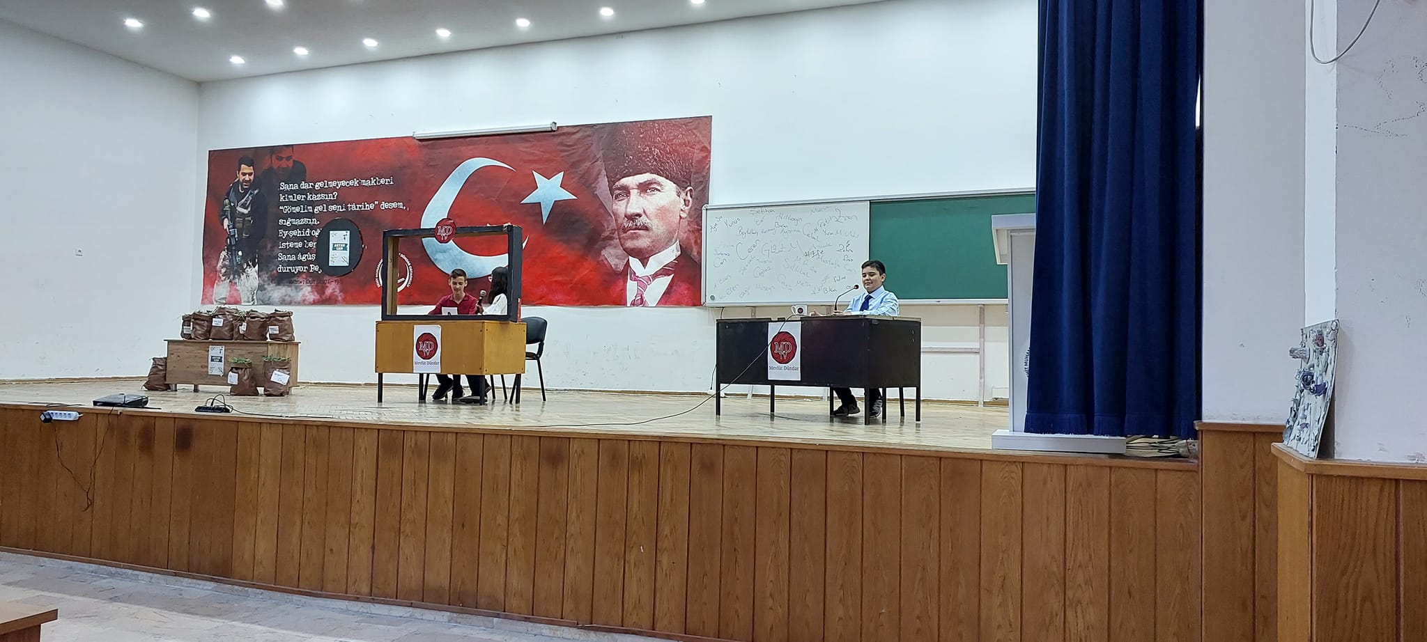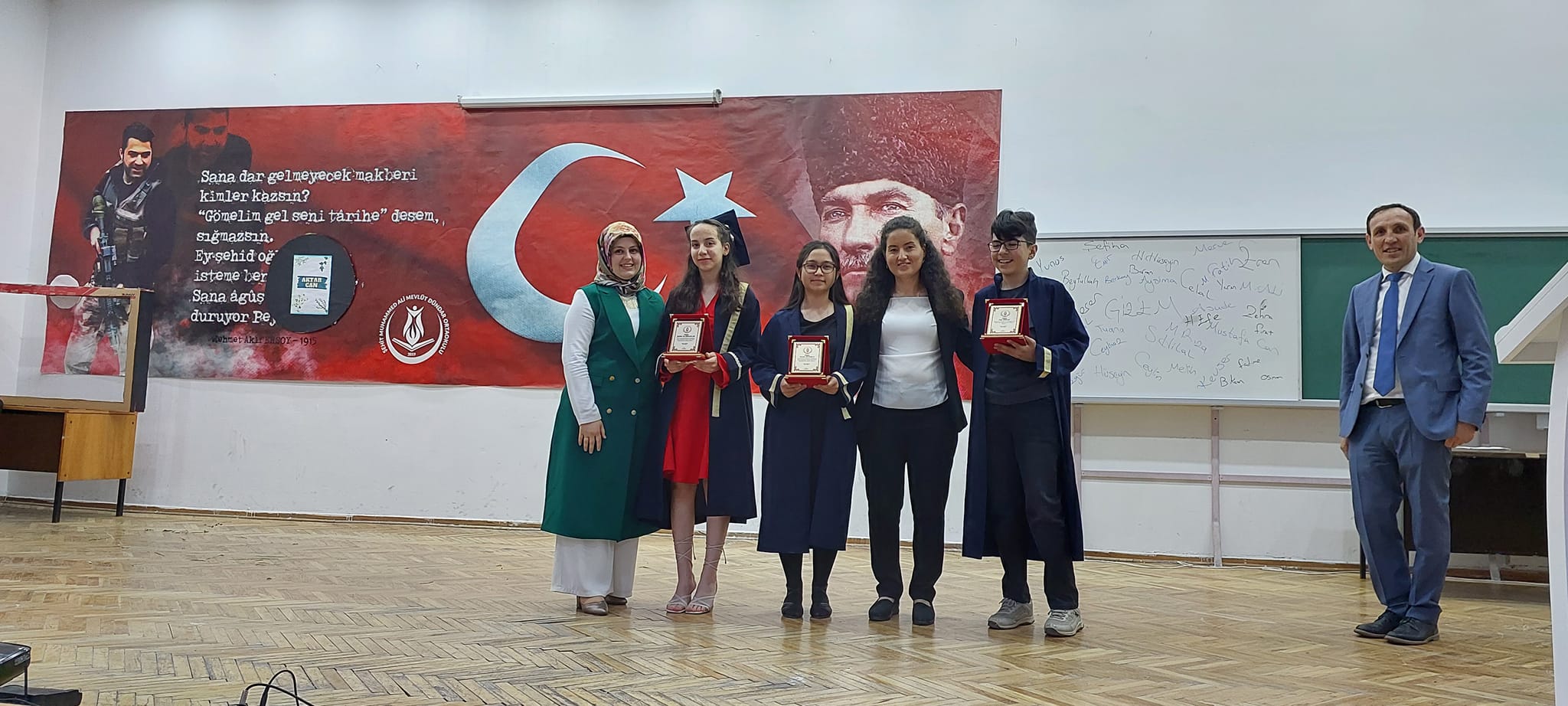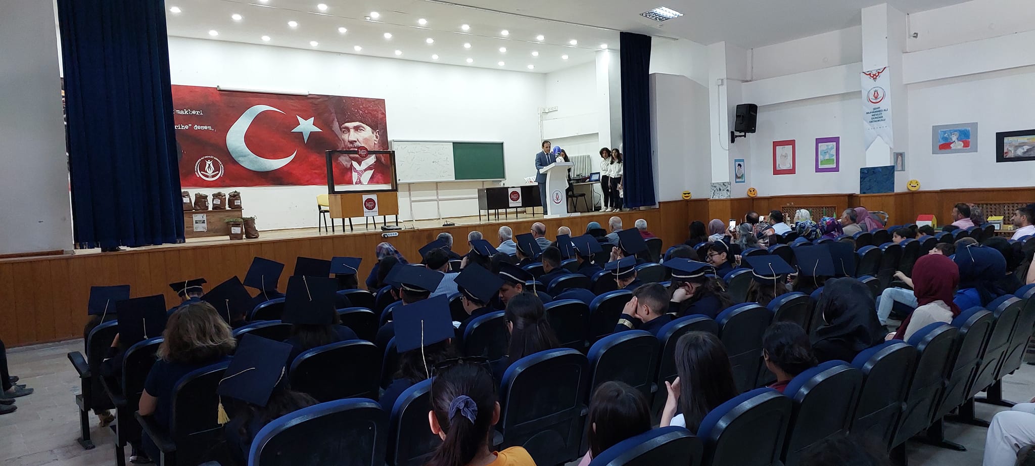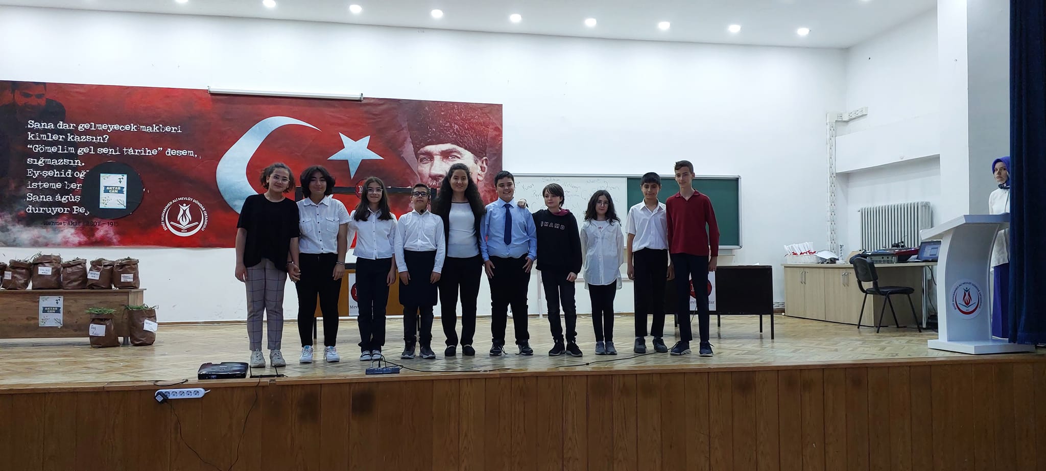 Şehit Muhammed Ali Mevlüt Dündar Ortaokulu, Depremzedelere Yardım Kermesi, Mezuniyet ve Kep Atma Töreni, Okuldan Haberler Adlı Tiyatro Gösterisi, Resim ve Tasarım Sergisi ve Açılışları Gerçekleştirdi.