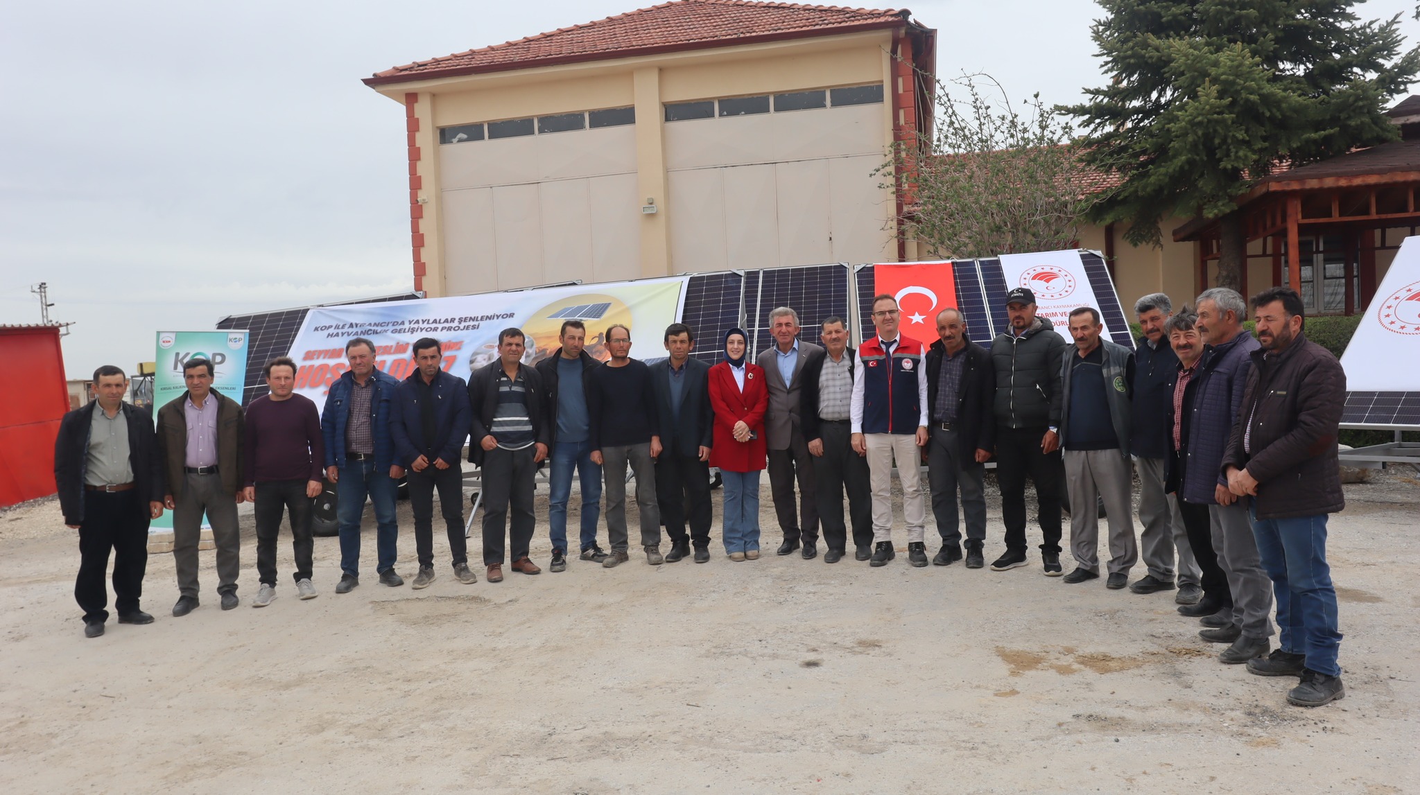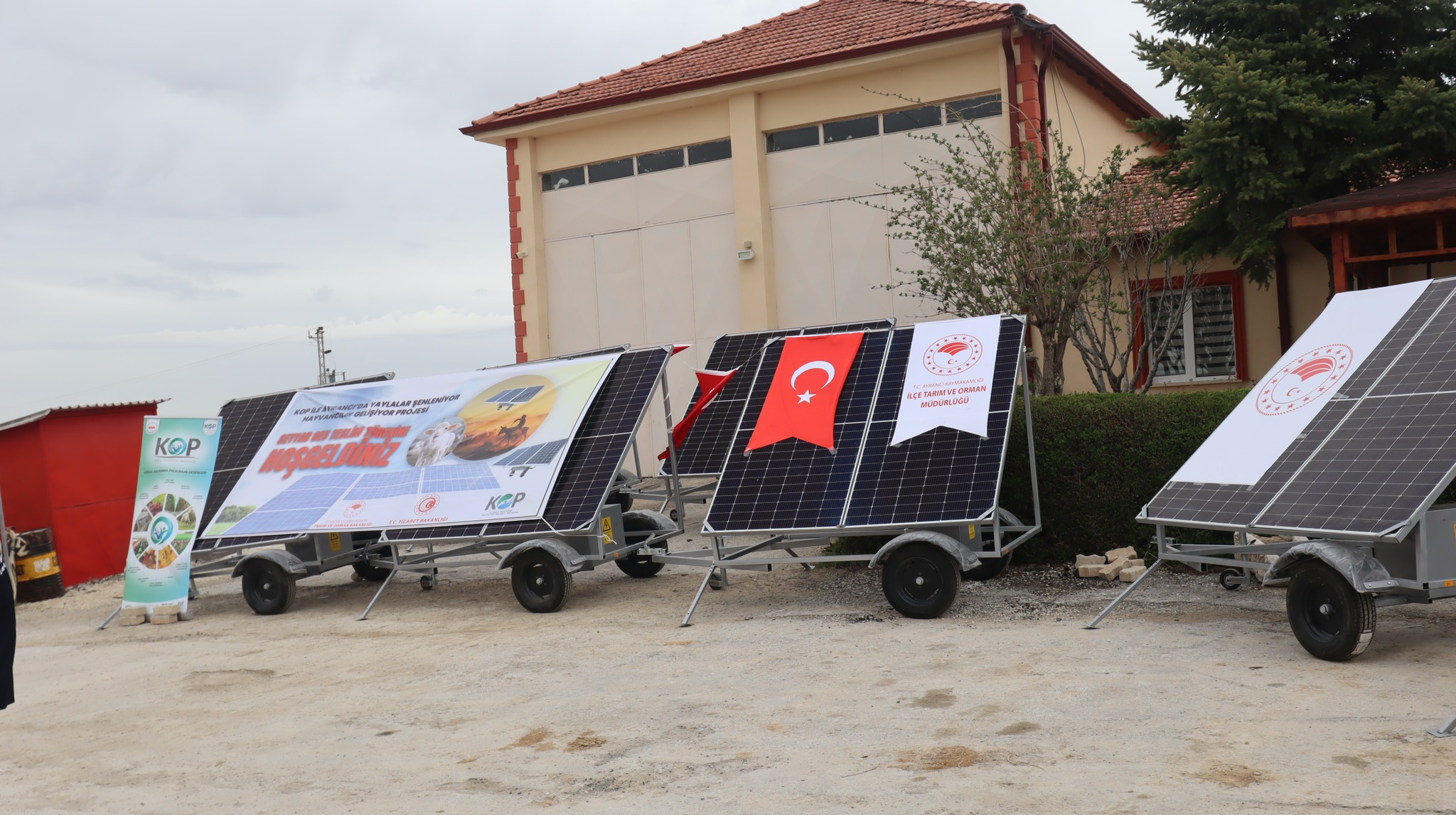 SEYYAR GES DAĞITIMI GERÇEKLEŞTİRİLDİKOP İLE AYRANCI'DA YAYLALAR ŞENLENİYOR HAYVANCILIK GELİŞİYOR PROJESİ KAPSAMINDA SEYYAR GES DAĞITIMI GERÇEKLEŞTİRİLDİ.Ayrancı İlçe Müdürlüğümüz tarafından hazırlanarak KOP Bölge Kalkınma İdaresi Başkanlığına sunulan ve kabul edilen proje ile 20 adet Seyyar Ges ünitesi düzenlenen teslim töreninde Hak sahiplerine verildi.Ayrancı İlçesinde düzenlenen programa Ayrancı Kaymakamı Sayın Bünyamin İlkay, , İl Tarım ve Orman Müdürü Hatice Bulut, İl Genel Meclisi Başkanı Tamer Yıldızbaş, AK Parti Karaman İl Başkanı Murat Öztürk, AK Parti Ayrancı İlçe Başkanı Muzaffer Demir, İl Genel Meclisi Üyesi Abdullah Toker, Ayrancı İlçe Tarım ve Orman Müdürü Alp Oğuz, Ayrancı İlçesi kurum amirleri, Koyun Keçi Yetiştiricileri Birliği Başkanı Yücel Yaman ve GES ünitesi almaya hak kazanan küçükbaş üreticilerimiz katıldı.Saygı Duruşu ve İstiklal Marşı ile başlayan teslim töreninde Ayrancı İlçe Tarım ve Orman Müdürü Alp Oğuz’un açılış konuşmasından sonra İl Müdürü Hatice Bulut yaptığı konuşmada “KOP Bölge Kalkınma İdaresi Başkanlığına sunulan proje ile 20 üreticimize GES ünitelerini teslim ediyoruz. Elektriği olmayan küçükbaş hayvan işletmelerinde süt sağım makinesi , kırkım makinesi gibi ekipmanları kullanarak hayvancılıkta sürdürülebilirliği arttırarak hem hayvan refahını amaçlayan projemizde Römork üzerine monteli 2 adet 550 WATT’lık güneş paneli 3000 WATT’lık akıllı invertör ve 2 adet 150 amperlik jel akü teslimini yaptığımız üreticilerimizin refahı en büyük hedefimiz, İl Müdürlüğü ve İlçe Müdürlüklerimizce ilimiz üretimini arttırmak amacı ile projelerimize devam edeceğiz.” Dedi.Teslim Töreni toplu fotoğraf çekimi ile son buldu.