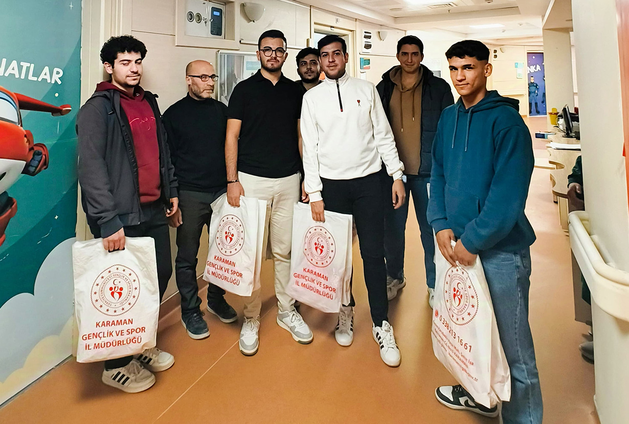 Karaman Gençlik ve Spor İl Müdürlüğüne bağlı Piri Reis Erkek Yurdundan barınan gönüllü öğrenciler, “Lösemili Çocuklar Haftası” dolayısıyla, farkındalık oluşturmak ve lösemili çocuklara moral vermek amacıyla anlamlı bir ziyaret gerçekleştirdi.