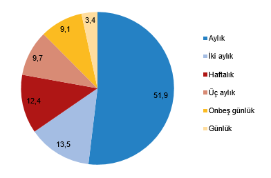 Resmi reklam yayımlayan dergilerin %51,9'u aylık, %13,5'i iki aylık, %12,4'ü haftalık, %9,7'si üç aylık, %9,1'i on beş günlük ve %3,4'ü günlük olarak yayımlandı. Resmi ilan yayımlayan gazetelerin ise %60,6'sı günlük, %39,4'ü haftada iki-altı gün arası olarak yayımlandı. Bu yayınların toplam tirajının %99,6'sını günlük, %0,4'ünü haftada iki-altı gün arası yayımlananlar oluşturdu.