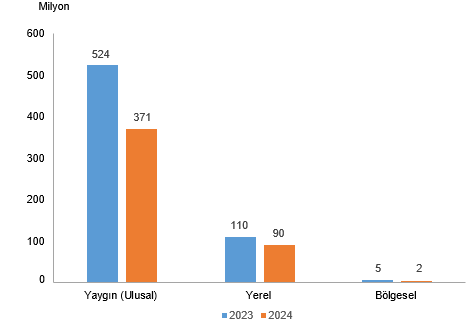 Basın İlan Kurumu verilerine göre, 2024 yılında resmi ilan yayımlayan gazete sayısı bir önceki yıla göre %11,9 azalarak 753 oldu. Bu yayınların %95,9'unu yerel, %3,1'ini yaygın (ulusal), %1,1'ini ise bölgesel yayınlar oluşturdu. Ülkemizde 2024 yılında resmi ilan yayımlayan gazetelerin yıllık toplam tirajı ise 2023 yılına göre %27,5 azalarak 462 milyon 707 bin 383 olup, tirajın %80,1'ini yaygın (ulusal) gazeteler oluşturdu.