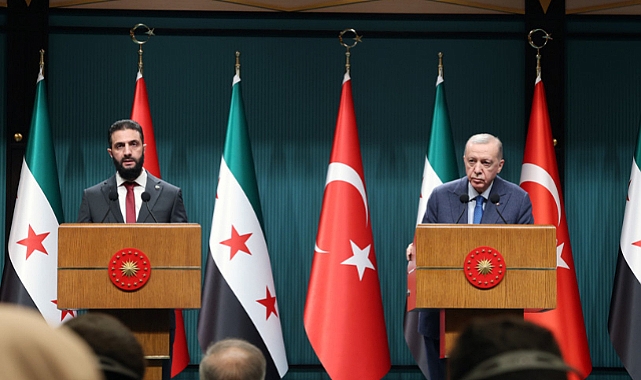 Cumhurbaşkanı Recep Tayyip Erdoğan ve Suriye Arap Cumhuriyeti Cumhurbaşkanı Ahmed Şara, Cumhurbaşkanlığı Külliyesindeki baş başa görüşmelerinin ardından, ortak basın toplantısı düzenleyerek açıklamalarda bulundu.