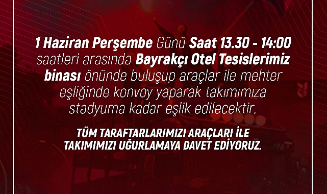 Başkan HAN yaptığı açıklamada; ‘’1 Haziran Perşembe Günü (Yarın) Orduspor 1967 İle oynayacağımız Play-Off yarı final maçı öncesi takımımızı konvoy halinde saat 14:00’da Bayrakçı Otel Kulüp Tesislerinde buluşup Kemal Kaynaş Stadyumu’na Mehteran eşliğinde uğurlayacağız. Bütün Karamanspor sevdalısı kardeşlerimizi ve hemşerilerimizi bekliyoruz. Gün birlik olma günüdür ve birlikte başaracağız! ‘’ diye konuştu.
