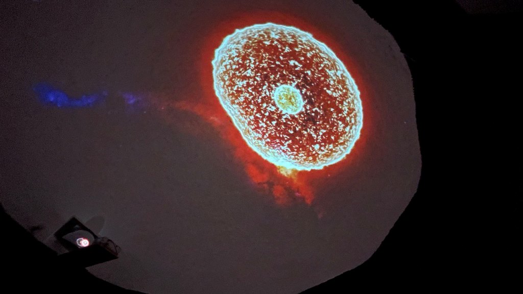 Şadırvanın kubbesini kullanarak uzay evi projesi yapmaya karar verdiklerini belirten Kadir Yetiş, uzay evinin yapım sürecini davetlilerle paylaştı. Yetiş, "Öncelikle projemizin maliyetini çıkardık ve bununla ilgili kaynak aramaya başladık. İlimizde bulunan yardımseverler ile bugüne kadar 48 bin lira yardım topladık ve projemize başladık. İlk etapta muslukların sökülmesi, iç mekânda bulunan taburelerin kaldırılması işlemini yaptık. Sonra su giderlerine beton dökerek zemini düzelttik ve zemine parke döşedik. Projemizde en büyük eksikliklerden bir tanesi elektrik olmayışıydı. Okulumuzdan elektrik hattı çekerek bu sorunu ortadan kaldırdık. İç mekân özel akustik malzemelerle kaplandı. Ses sistemi çekildi. En önemli adım olan projeksiyon montajı ile ilk görüntüyü elde ettik. Duvarlarda pencere bölümlerine NASA’dan aldığımız görüntülerin tablolarını oluşturduk. Tabloları LED aydınlatma ile döşedik. Zemin için halı döşemesi yaptık. İl Millî Eğitim Müdürlüğümüzün desteği ile armut koltukları temin ettik." dedi.