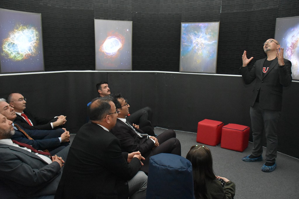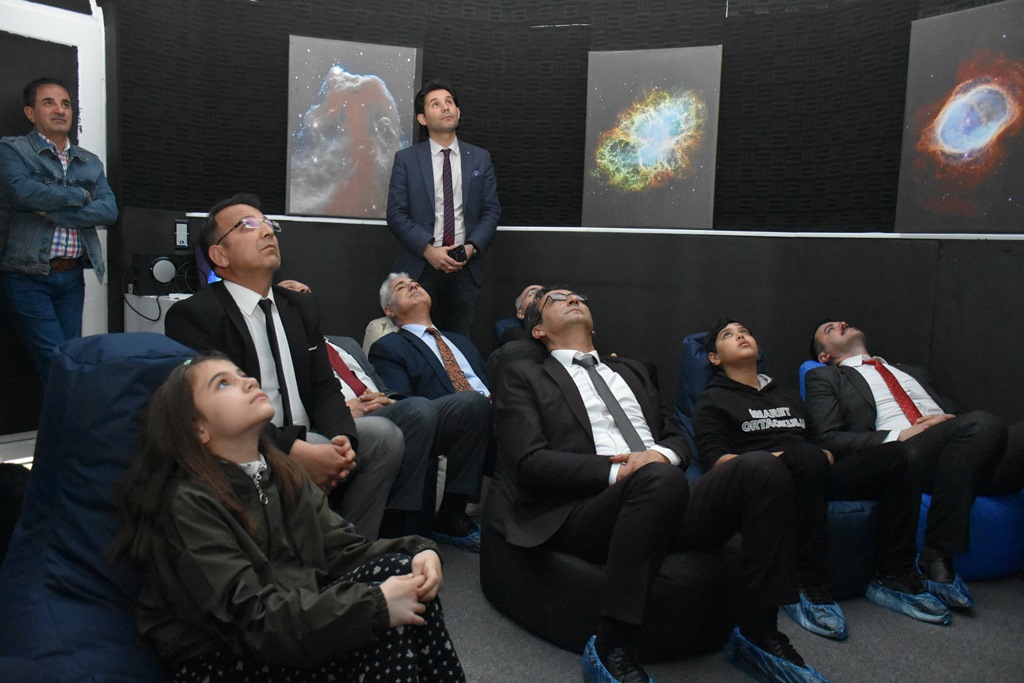 İmaret Ortaokulu Fen Bilimleri Öğretmeni Kadir Yetiş’in konuşmasının ardından protokol üyelerine bir gösterim gerçekleştirildi. Davetliler yayınlanan gösterimde güneş, ay, gezegenler ve gök cisimleri hakkında bilgi sahibi oldular.