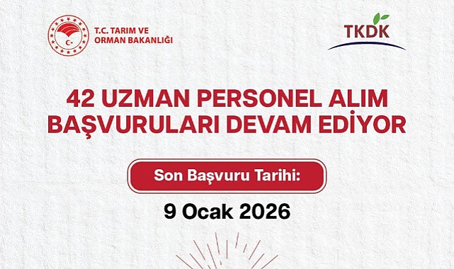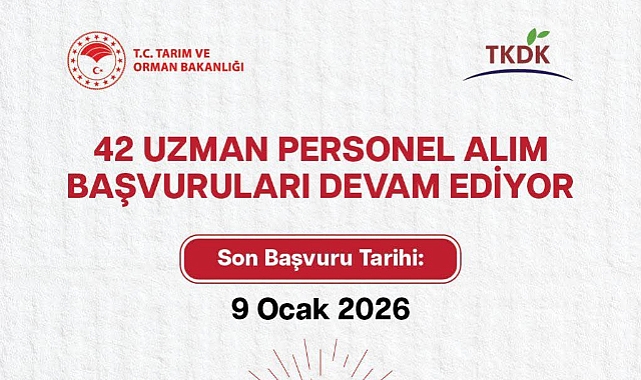 Tarım ve Orman Bakanlığı 42 Uzman Personel Alımı YapacakTarım ve Orman Bakanlığı’nın taşra teşkilatlarında görevlendirilmek üzere farklı branşlarda alacağı 42 uzman personel için başvurular 9 Ocak 2026’ya kadar devam ediyor.