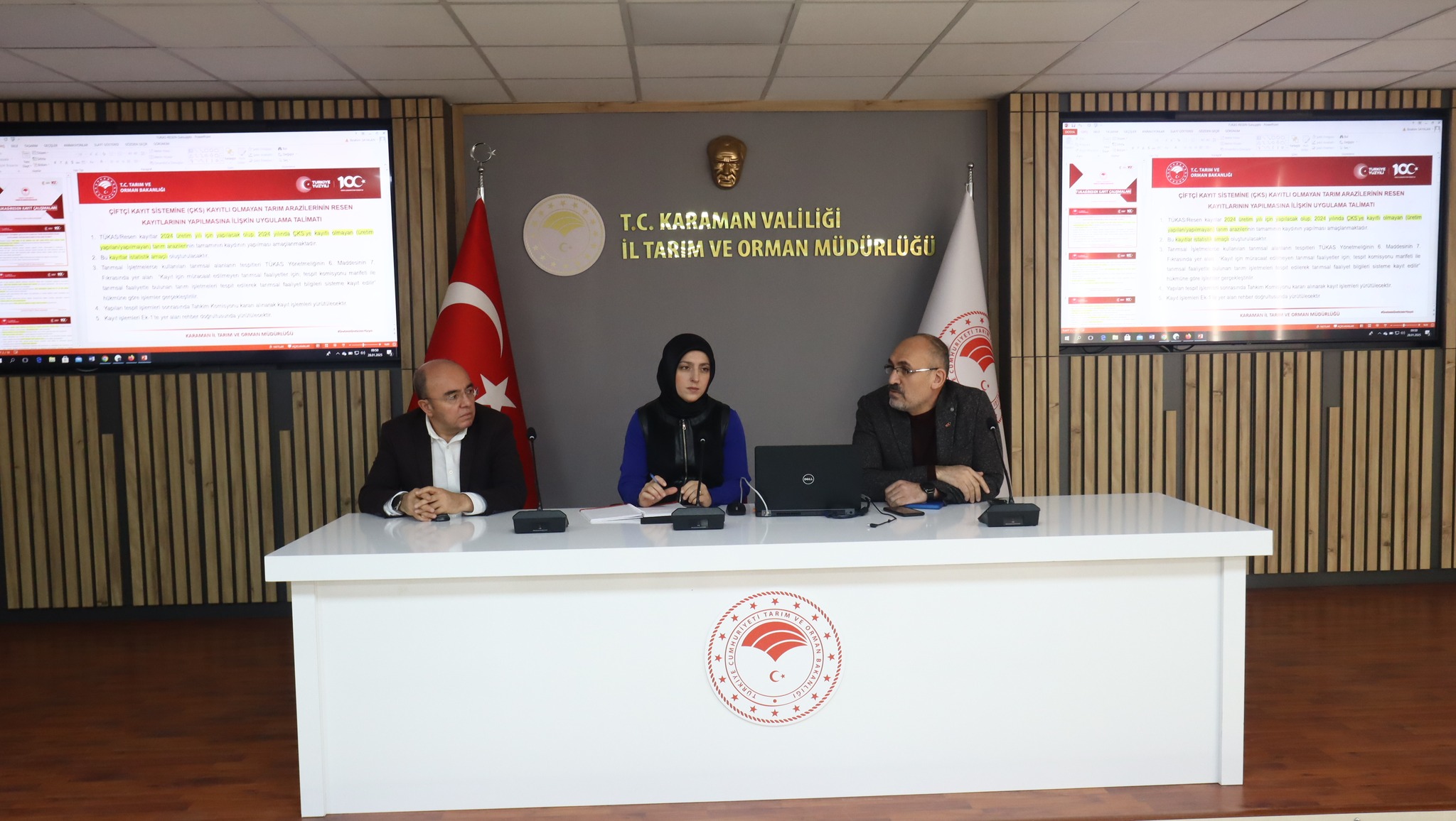 Karaman İl Tarım ve Orman İl Müdürü Hatice Bulut başkanlığında Bakanlığın 2025 yılında uygulamaya koymuş olduğu Tarımsal Üretim Kayıt Sistemi (TÜKAS) çalışma grubu ile bir toplantı düzenlendi.