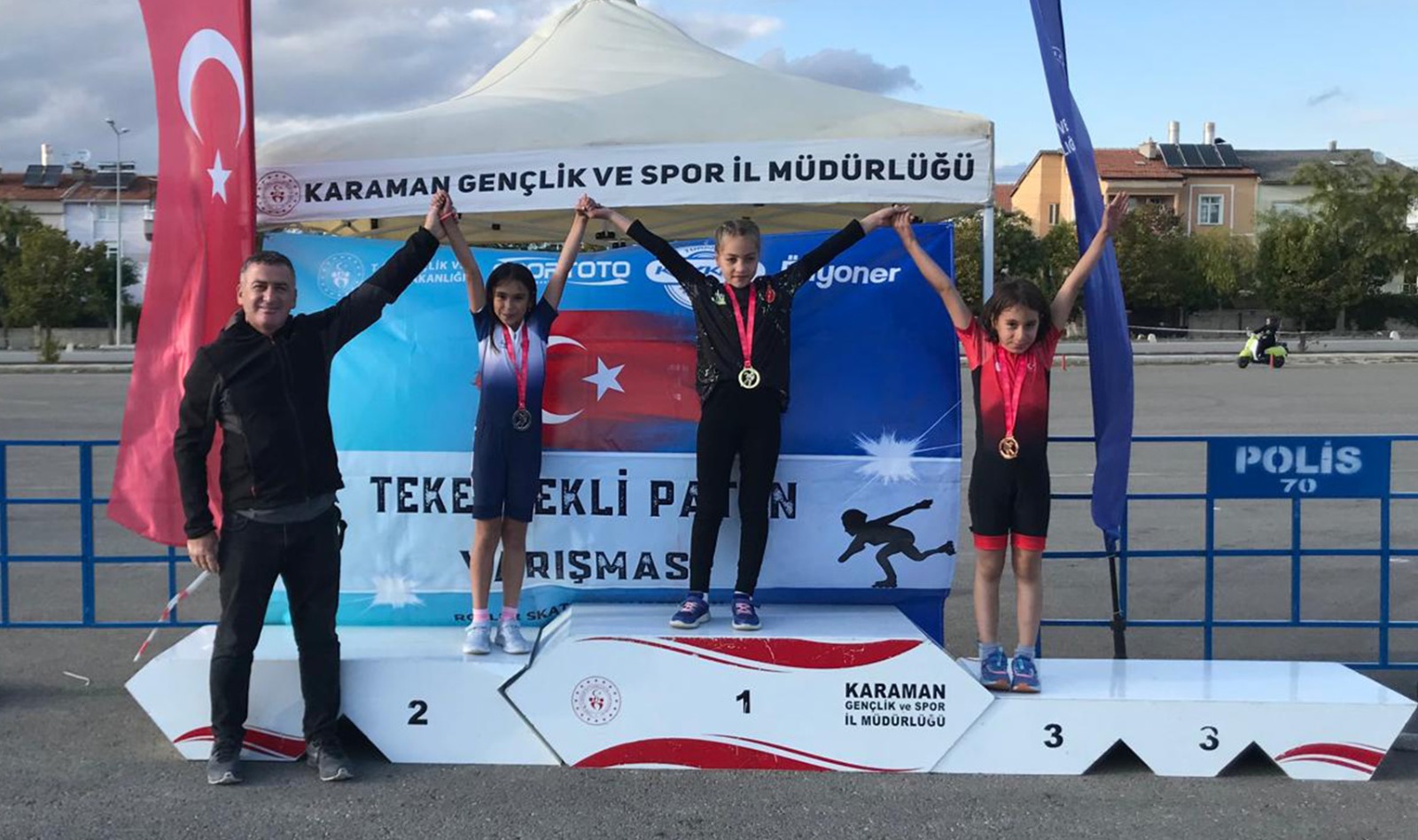 TEKERLEKLİ PATEN TÜRKİYE ŞAMPİYONASI KARAMAN’DA SONA ERDİTürkiye’de ilk defa Karaman’ın ev sahipliğinde düzenlenen Tekerlekli Paten Türkiye Şampiyonası, birbirinden heyecanlı yarışmaların ardından sona erdi. Türkiye Kaykay Federasyonu 2024 yılı faaliyet takviminde yer alan ve Karaman’da Gençlik ve Spor İl Müdürlüğü koordinesinde düzenlenen Tekerlekli Paten Türkiye Şampiyonası Motosiklet Eğitim Pisti’nde son gün yapılan uzun mesafe yarışmalarının ardından sona erdi. İlginin yoğun olduğu şampiyonada sporcular hız, teknik ve dayanıklılıklarıyla izleyicilere unutulmaz anlar yaşattı.Sporseverler bu heyecan dolu organizasyona yoğun ilgi gösterirken, şampiyona Karaman’ın spora verdiği desteği bir kez daha gözler önüne serdi. Şampiyona sonunda dereceye giren sporcular ise milli takım kadrosuna girmeye hak kazandı.Türkiye genelinden U10-U12-U15-U18 ve U18+ yaş kategorilerinde toplam 144 sporcunun mücadele ettiği şampiyonada dereceye giren sporculara madalyaları Türkiye Kaykay Federasyonu Genel Sekreteri Armağan Kaplan, Gençlik ve Spor İl Müdürlüğü Şube Müdürü Aydın Kaya, Başhakem Mohsen Bohloli Zanjani ve hakemler tarafından verildi.Gençlik ve Spor İl Müdürü Mustafa Karadeniz, başarılı sporcuları tebrik ederek, “Tekerlekli Paten Türkiye şampiyonasının ilk defa Karaman’da yapılmasından dolayı mutluyuz. Güzel bir organizasyonla şampiyonaya en iyi şekilde ev sahipliği yaptık. Bu organizasyon, sporcularımızın gelişimi açısından da önemli bir adım oldu. Şampiyonaya katılan tüm sporculara ve emeği geçenlere teşekkür ediyorum” dedi.Şampiyona sonunda oluşan genel sıralama ise şöyle;KISA MESAFE YARIŞLARI:U10 Kadınlar:
