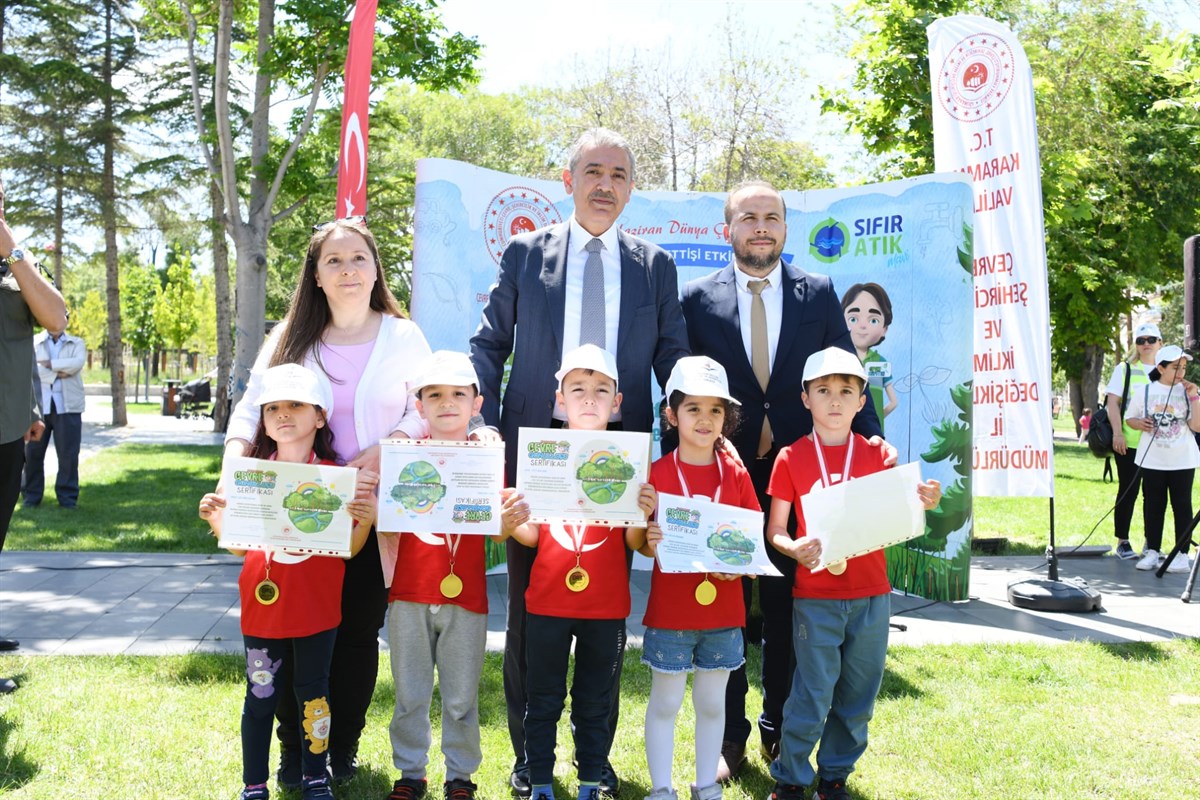 Konuşmaların ardından Vali Akkoyun, Karamanoğlu Mehmetbey Üniversitesi Uygulama Anaokulu öğrencisi Çevre Müfettişlerine madalyalarını verdi.