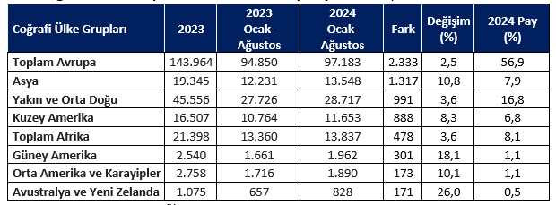- Avustralya ve Yeni Zelanda’ya yapılan ihracatımız %26,0 artışla (171 milyon dolar artış) 0,8 milyar dolara ulaşmıştır.
