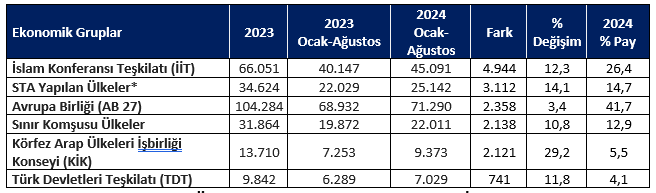 - İslam İşbirliği Teşkilatı (İİT) üyesi ülkelere yapılan ihracat %12,3 artışla (4,9 milyar dolar artış) 45,1 milyar dolara,