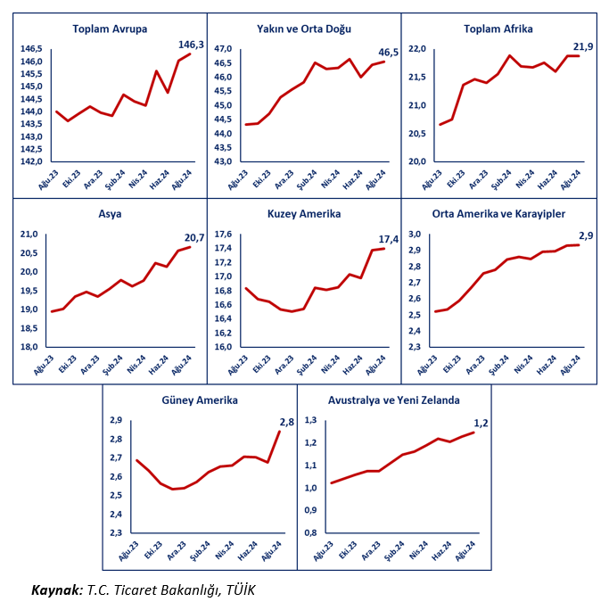 - Asya ülkelerine yapılan ihracatımız %10,8 artışla (1,3 milyar dolar artış) 13,5 milyar dolara,