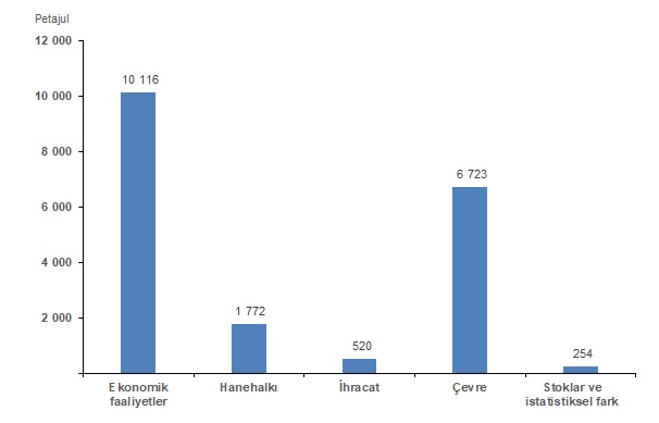 Toplam enerji akışları 19 bin 384 petajul(1)olarak hesaplandı