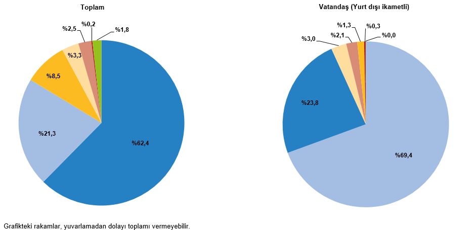 Bu çeyrekte yurt dışını ziyaret eden vatandaş sayısı bir önceki yılın aynı çeyreğine göre %14,3 azalarak 2 milyon 691 bin 402 kişi oldu. Bunların kişi başı ortalama harcaması 792 dolar olarak gerçekleşti.