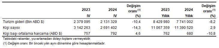 Turizm gideri ve yurt dışını ziyaret eden (yurt içi ikametli) vatandaş sayısı, IV. Çeyrek: Ekim-Aralık, 2024