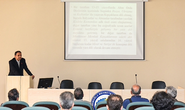 Konferansı gerçekleştiren Edebiyat Fakültesi Türk Dili ve Edebiyatı Öğretim Üyesi Doç. Dr. Okan Celal Güngör, 'Türkçenin Tarihi Gelişimi' hakkında önemli açıklamalarda bulundu.