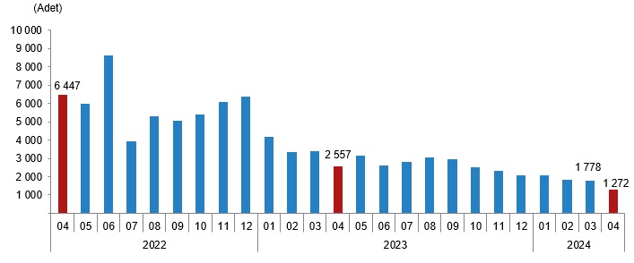 Türkiye genelinde konut satışları Nisan ayında bir önceki yılın aynı ayına göre %11,8 azalarak 75 bin 569 oldu. Konut satış sayısının en fazla olduğu iller sırasıyla 12 bin 406 ile İstanbul, 6 bin 272 ile Ankara ve 4 bin 427 ile Antalya olurken, en az olduğu iller sırasıyla 18 ile Ardahan, 35 ile Hakkari ve 49 ile Tunceli oldu.