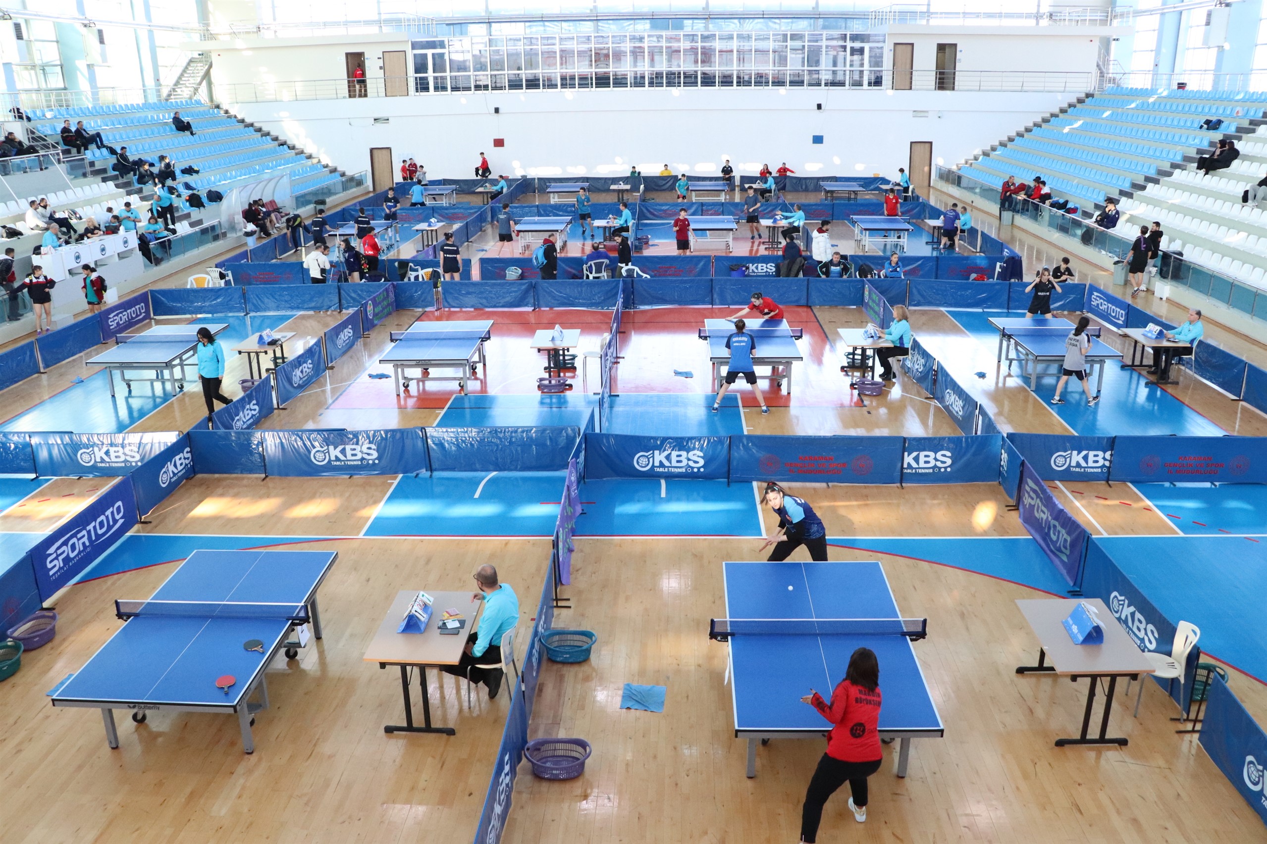 Türkiye Masa Tenisi Federasyonu 2024 yılı faaliyet takviminde yer alan ve Karaman Gençlik ve Spor İl Müdürlüğü ev sahipliğinde KMÜ Taha Akgül Spor Salonu’nda düzenlenen Yıldızlar ve Genç Masa Tenisi En İyi 16 Yarışmaları kızlar ve erkekler kategorisinde 64 sporcunun katılımı ile başladı. 3 gün sürecek müsabakalarda il, ulusal ve uluslararası hakemler görev alacak.