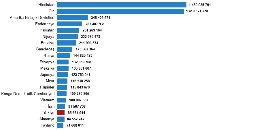 TÜRKİYE, NÜFUS VERİLERİYLE DÜNYADA 18. SIRADA