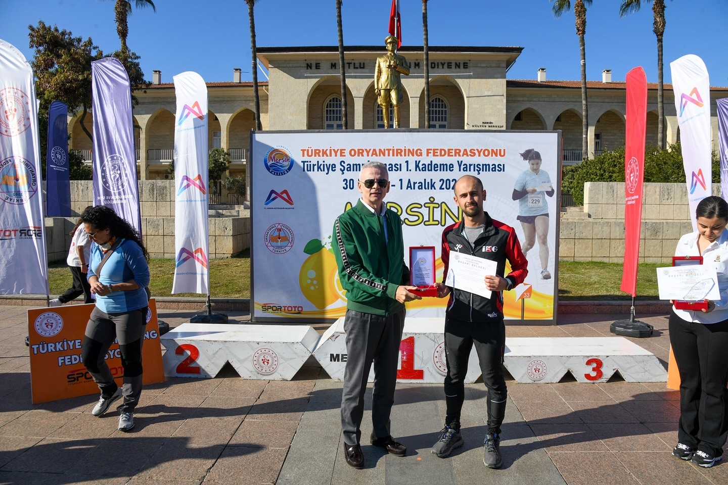 Türkiye Oryantiring Şampiyonası 1. Kademe Yarışmaları Ödül Töreni Gerçekleştirildi. 34 farklı kategoride toplam 1.229 sporcunun mücadele ettiği şampiyonada dereceye giren sporcular ödüllerini, Oryantiring Federasyonu Yönetim Kurulu Üyesi de olan Vali Mehmet Fatih Çiçekli, Mersin Valisi Ali Hamza Pehlivan ve diğer protokol üyelerinin elinden aldı.