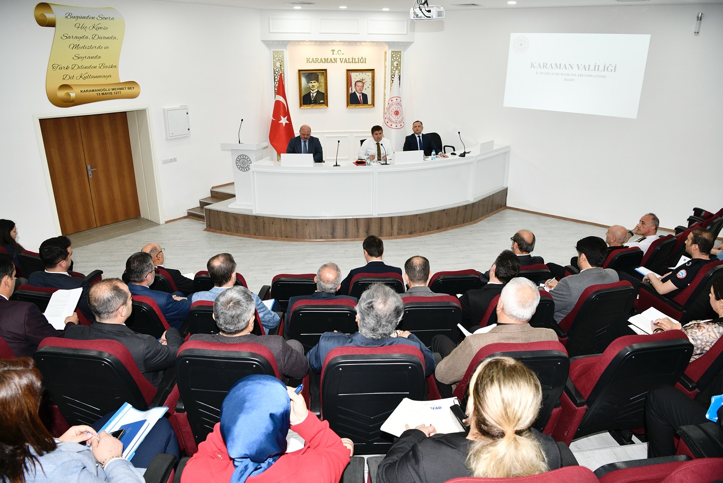 Valimiz H. Engin Sarıibrahim Başkanlığında İl İdare Şube Başkanları Toplantısı Yapıldı5442 Sayılı İl İdaresi Kanunu’nun 24. maddesi gereğince, idarede birliğin sağlanması,işlerin gözden geçirilerek düzenleştirilmesi, teşkilatın ahenkli çalışması için gerekli tedbirlerin alınmasını görüşmek ve kararlaştırmak amacıyla yapılan İl İdare Şube Başkanları toplantısı Valimiz H. Engin Sarıibrahim Başkanlığında gerçekleştirildi.Cumhurbaşkanımız Sayın Recep Tayyip Erdoğan’ın imzasıyla yayımlanan “Tasarruf Tedbirleri” konulu 2024/7 Sayılı Cumhurbaşkanlığı Genelgesi gündemli toplantıda kamu kurum ve kuruluşları tarafından yapılacak iş ve işlemler değerlendirildi.Toplantıda ayrıca Valimiz H. Engin Sarıibrahim, kamu hizmetlerinin sağlıklı bir şekilde yürütülmesi, vatandaşların kamu hizmetlerine erişiminde kolaylık ve kamu hizmetleri sunumunda şeffaflığın sağlanması noktasında kurum amirlerinden hassasiyet göstermelerini istedi.Toplantıya; Vali Yardımcıları Fatih Baysal, Mustafa Karaca, Mehmet Yasin Erkan, İl Emniyet Müdürü Ahmet Selçuk Okumuş, İl Jandarma Komutanı Albay Dr. Murat Alkan ve ilgili kurum müdürleri katıldı.