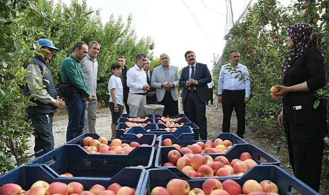 Vali H.Engin Sarıibrahim Kızık Köyü’nde 333 dekar alanda yıllık 1500 ton üretim kapasitesi bulunan işletmede elma hasadına katıldı.