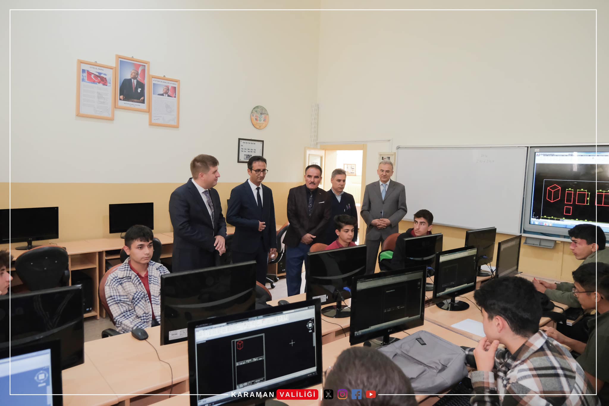 Vali H. Engin Sarıibrahim Karaman Mesleki ve Teknik Anadolu Lisesi'ni Ziyaret Etti