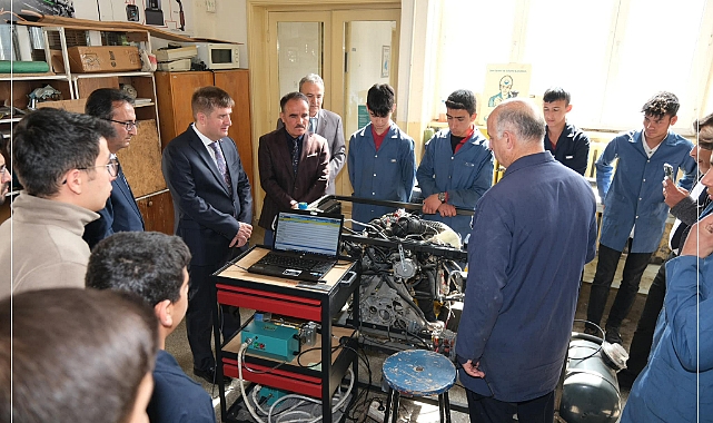 İl Milli Eğitim Müdürü Mehmet Çalışkan’ın da eşlik ettiği ziyarette uygulama atölyelerini gezerek incelemelerde bulunan Valimiz H. Engin Sarıibrahim, atölyelerde çalışmalarını sürdüren öğrencilerin çalışmalarını bir süre yerinde takip etti.Akabinde okul yöneticileri ve öğretmenler ile bir araya gelen Valimiz H. Engin Sarıibrahim, nitelikli işgücü yetiştirmede meslek liselerinin Türkiye'nin geleceğinde önemli bir yere sahip olduğunu belirterek, yürütülmekte olan eğitim ve öğretim hizmetlerine ilişkin değerlendirmelerde bulundu.Okul yöneticileri ve öğretmenlerin sürece ilişkin tespit, görüş ve önerilerini dinleyen Valimiz H.Engin Sarıibrahim, çalışmalarında başarılar diledi.