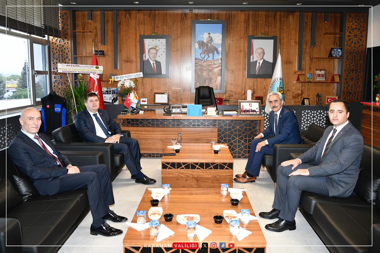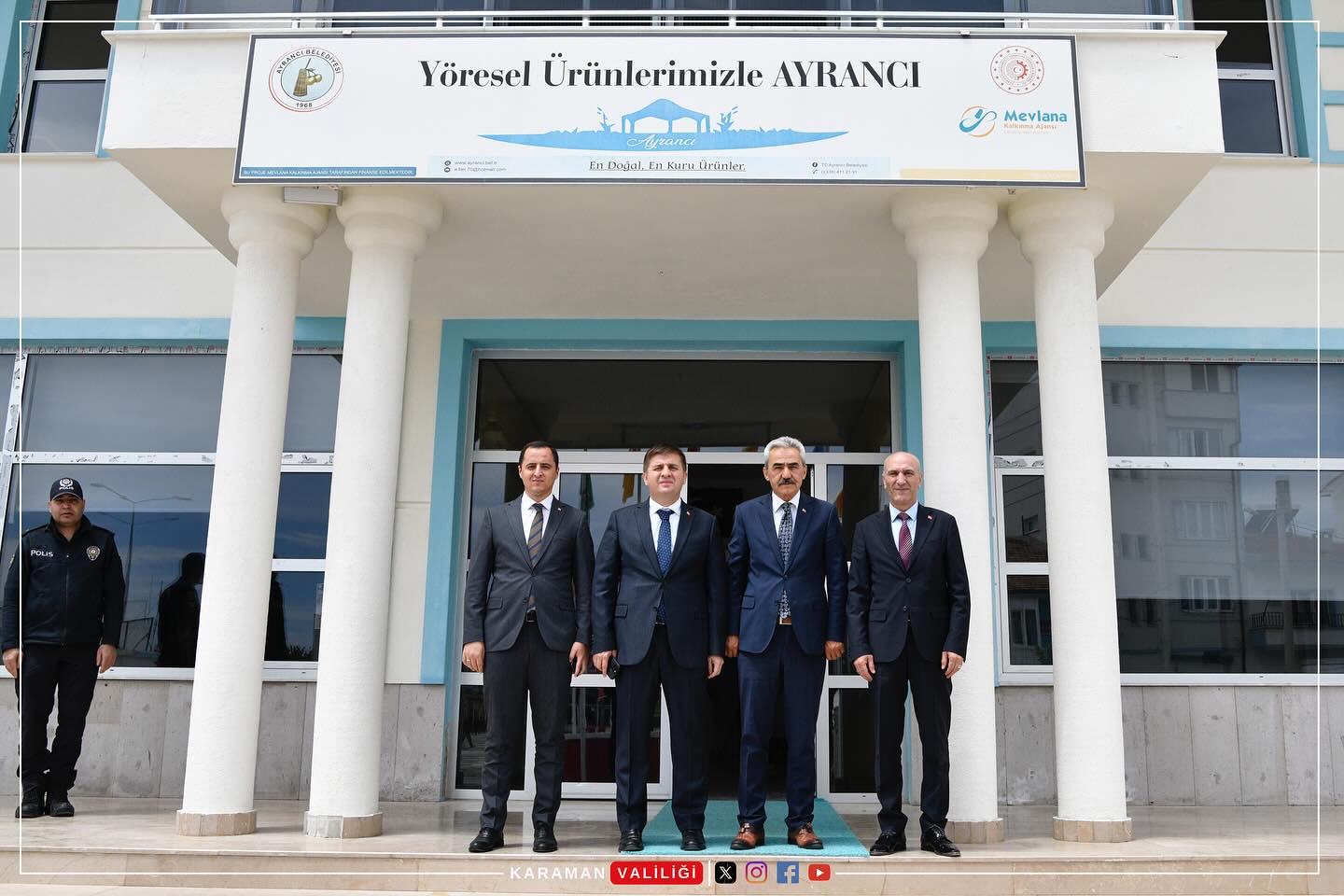 Vali H.Engin Sarıibrahim, 31 Mart 2024 tarihinde yapılan Mahalli İdareler Genel Seçimlerinde Ayrancı Belediye Başkanlığı görevine yeniden seçilen Yüksel Büyükkarcı’ya hayırlı olsun ziyaretinde bulundu.Ayrancı Kaymakamı Alptekin Ünlü ve Karaman İl Emniyet Müdürü Ahmet Selçuk Okumuş’un da eşlik ettiği ziyarette, Valimiz H.Engin Sarıibrahim, Belediye Başkanlığı görevine yeniden seçilen Yüksel Büyükkarcı’yı tebrik ederek, başarılar diledi.