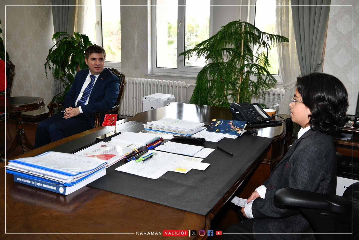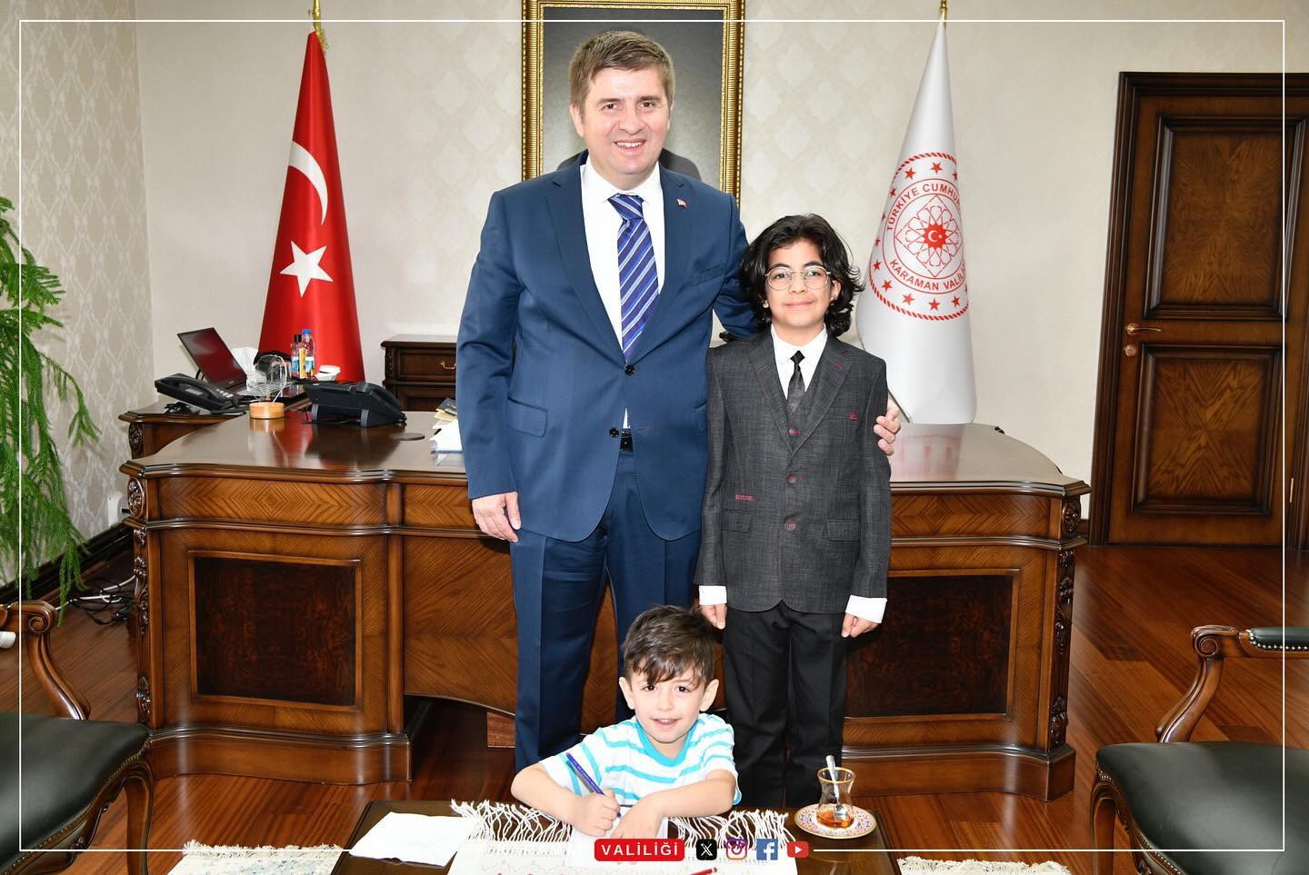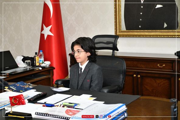 Vali H. Engin Sarıibrahim, 23 Nisan Ulusal Egemenlik ve Çocuk Bayramı dolayısıyla koltuğunu TOKİ Ortaokulu 5. Sınıf öğrencisi Recep Kaan Garip’e bıraktı.
