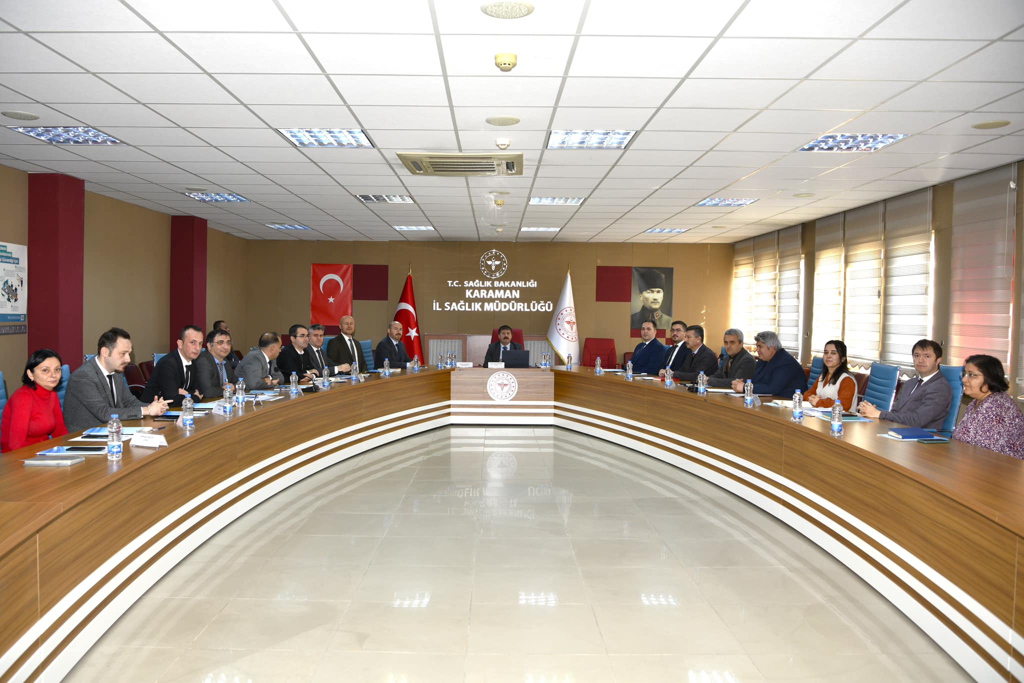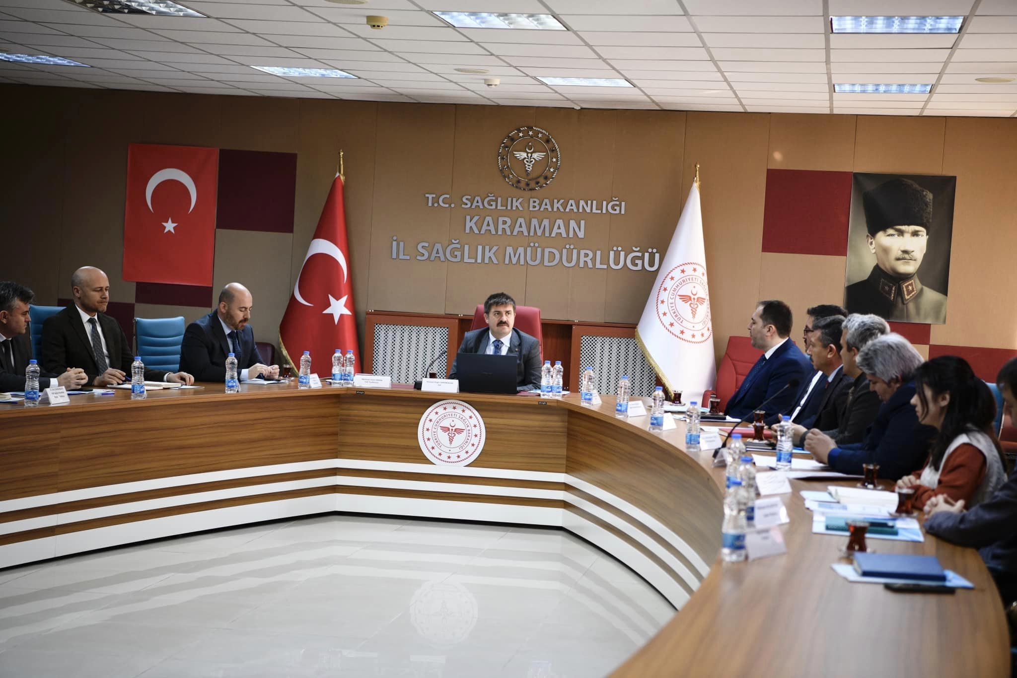 Kurum ziyaretlerini sürdüren Vali Engin Sarıibrahim, Karaman İl Sağlık Müdürlüğü’nü ziyaret ederek İl Sağlık Müdürü Dr. Mehmet Serkan Yurdakul’dan İlimiz genelindeki sağlık hizmetlerinin genel durumu, yapılan, devam eden ve planlanan yatırımlar hakkında detaylı brifing aldı.İl Sağlık Müdürlüğü birim yöneticilerinin de katıldığı sunum sonrasında değerlendirmelerde bulunan Valimiz H.Engin Sarıibrahim, özveri ile görev yapan tüm sağlık çalışanlarına çalışmalarında kolaylıklar diledi.