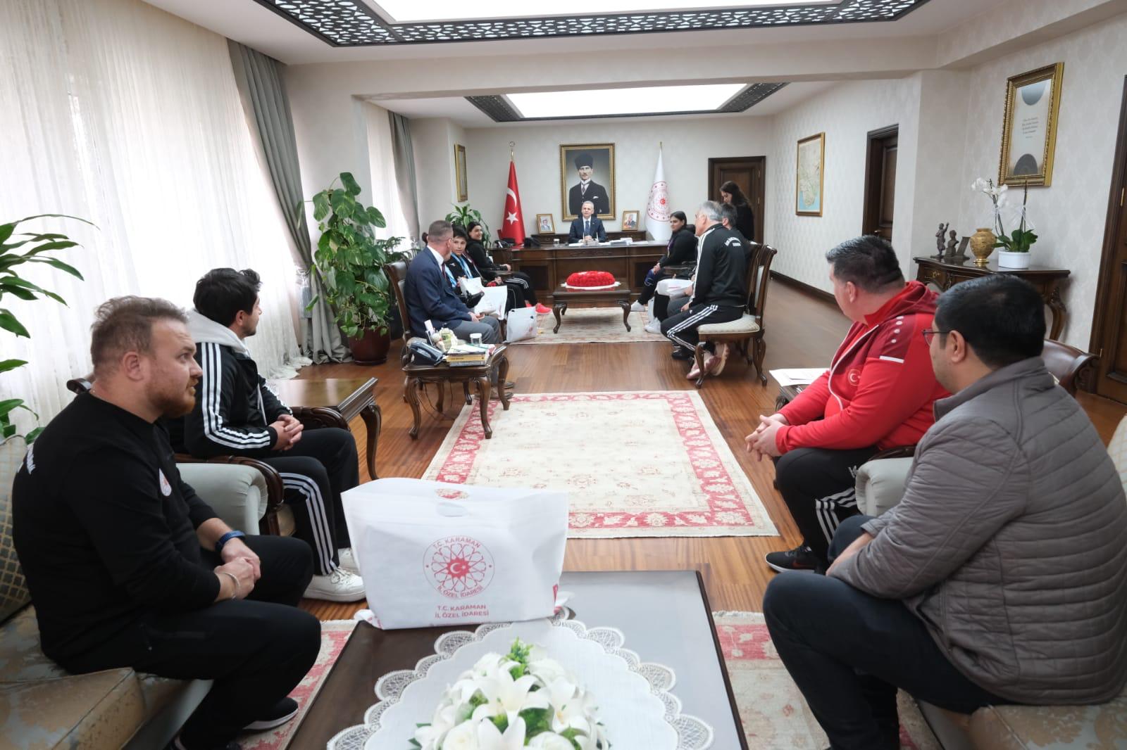 Karaman Valisi Mehmet Fatih Çiçekli, ulusal ve uluslararası müsabakalarda dereceye giren Özel İdare Spor Kulübü sporcularını ve antrenörlerini makamında misafir ederek ödüllendirdi.