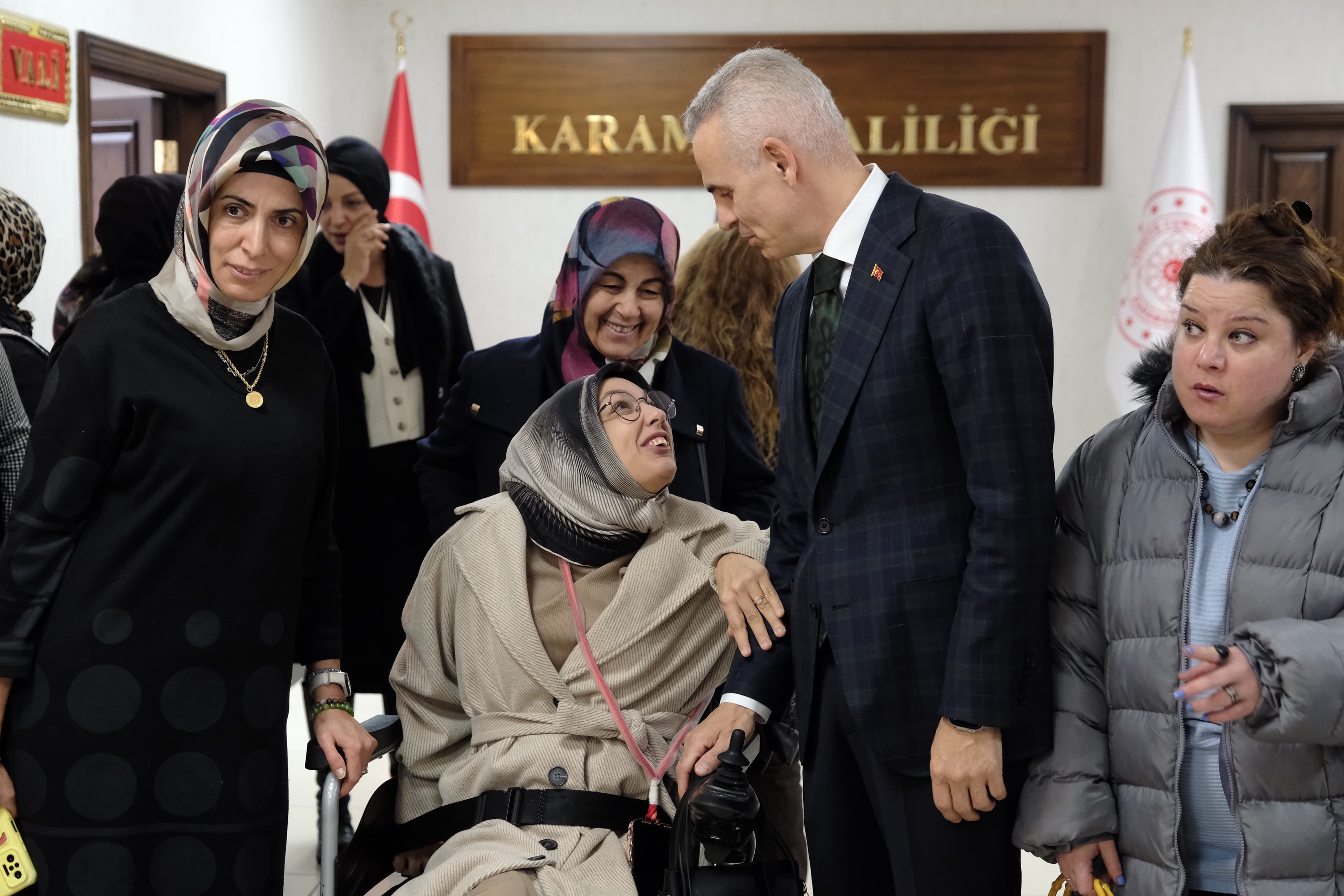 Vali Mehmet Fatih Çiçekli, Karaman Belediyesi tarafından özel gereksinimli bireylerin hayata kazandırılması, yeteneklerinin geliştirilmesi ve sosyalleşmelerine destek sağlamak amacıyla hizmete açılan Çocuk Oyun Köyü Ana Kucağı’nda eğitim gören özel gereksinimli öğrencilerimizi makamında misafir etti.