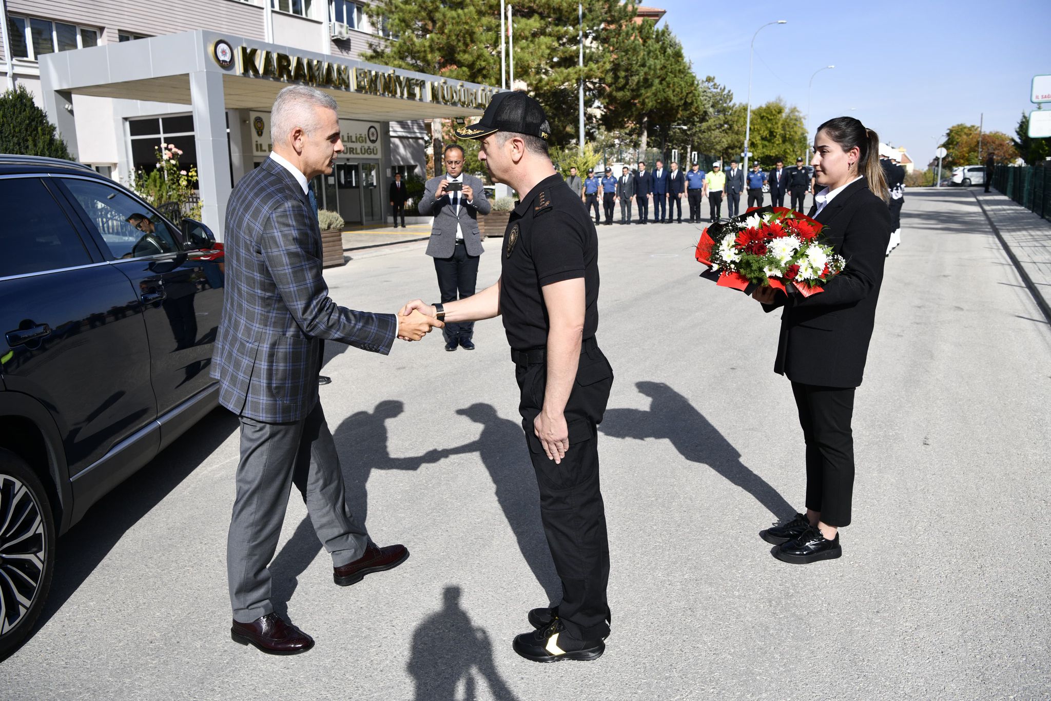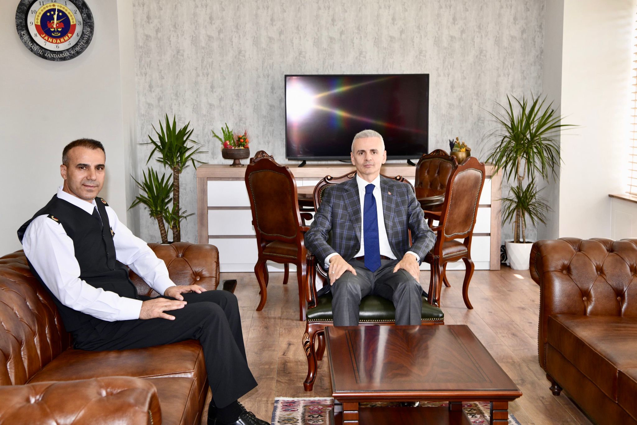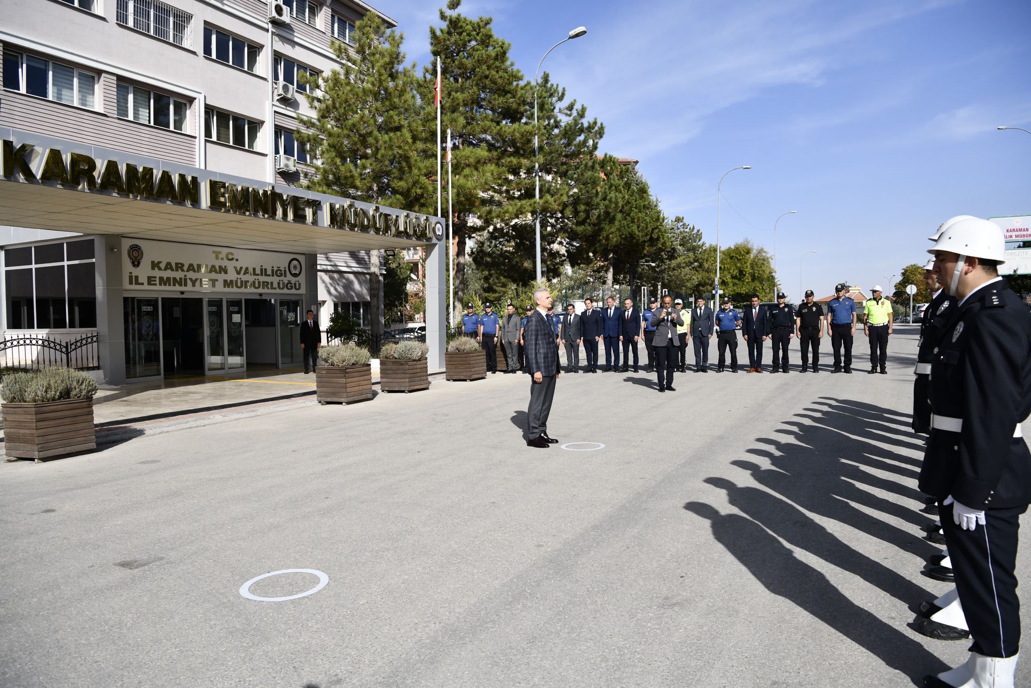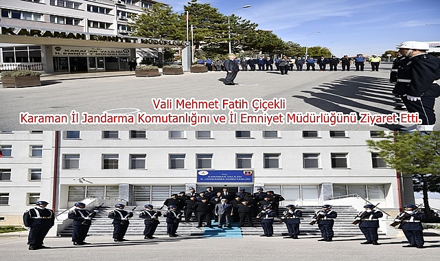 Vali Mehmet Fatih Çiçekli, Karaman İl Jandarma Komutanlığını ve İl Emniyet Müdürlüğünü Ziyaret Etti.İl Jandarma Komutanlığı önünde İl Jandarma Komutanı Kd.Albay Osman Saygılı ve diğer komutanlar tarafından karşılanan Valimiz Mehmet Fatih Çiçekli, karşılama mangasını selamladıktan sonra İl Jandarma Komutanlığı Şeref Defterini imzaladı. İl Emniyet Müdürlüğü önünde İl Emniyet Müdürü Mehmet Turhan ve şube müdürleri tarafından karşılanan Valimiz Mehmet Fatih Çiçekli, karşılama mangasını selamladıktan sonra İl Emniyet Müdürlüğü Şeref Defterini imzaladı.