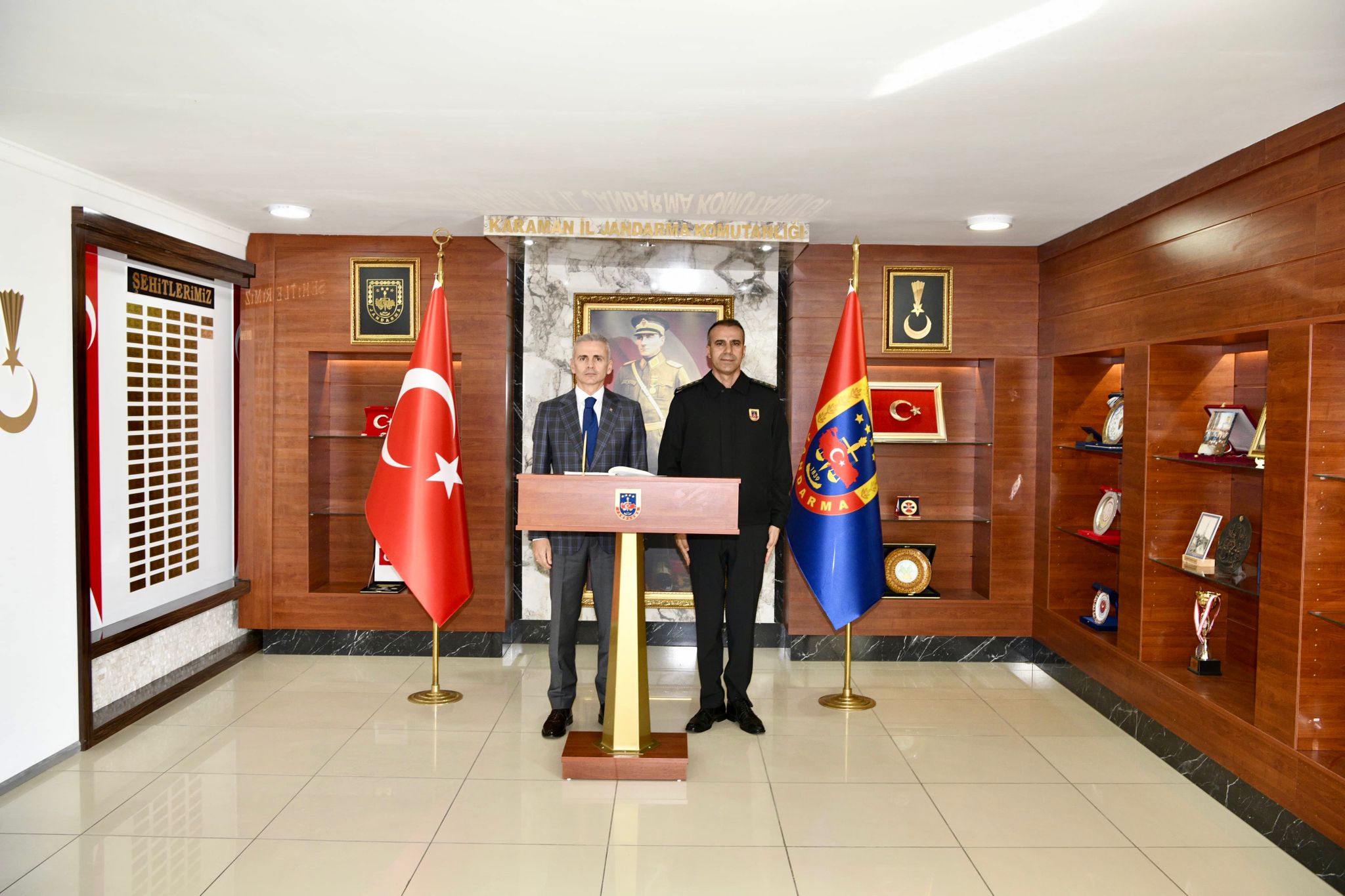 Karaman İl Jandarma Komutanlığı’nın sorumluluk alanındaki çalışmalara ilişkin brifing alan Sayın Valimiz “Vatandaşlarımızın huzuru ve esenliği için gece gündüz demeden, büyük bir azim ve kararlılıkla görev yapan İl Jandarma Komutanlığımızı ve kahraman personelini ziyaret etmekten büyük bir memnuniyet duyuyorum.Karaman İl Emniyet Müdürlüğü tarafından yapılan çalışmalara ilişkin brifing alan Sayın Valimiz “Hemşehrilerimizin huzur ve güvenliği için büyük bir azim ve kararlılıkla gece gündüz demeden görev yapan İl Emniyet Müdürlüğümüzü ve kahraman personelini ziyaret etmekten büyük bir memnuniyet duyuyorum.