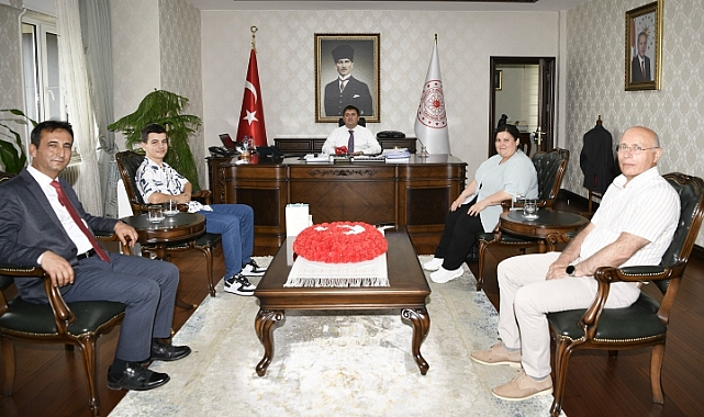 ValiH.Engin Sarıibrahim,LGS'de 500 tam puan olarak Türkiye birincisi olan Zübeyde Hanım Ortaokulu öğrencisi Berkay Nuri Güntürk'ü makamında kabul etti.