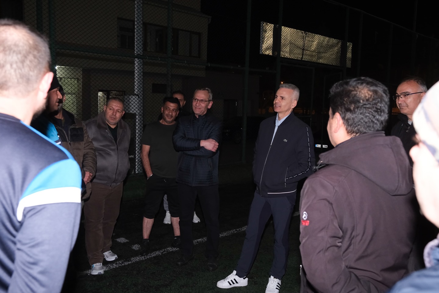 Vatandaşın Çağrısına Vali Kayıtsız KalmadıSosyal medyada bir vatandaşın çağrısına, ışıklandırma sorununun çözülmesine yönelik talebi üzerine Vali Mehmet Fatih Çiçekli incelemelerde bulundu.Sosyal medyada bir vatandaşın Yunuskent Futbol Sahası’nın ışıklandırma sorununun çözülmesine yönelik talebi üzerine Vali Sayın Mehmet Fatih Çiçekli, sahada incelemelerde bulundu.Gençlik ve Spor İl Müdürü Mustafa Karadeniz’in de eşlik ettiği ziyarette Sayın Valimiz, ışıklandırma probleminin giderilmesi için yetkililere gerekli talimatları verdi.İncelemeler sırasında sahada antrenman yapan veteran futbolcularla da bir araya gelen Sayın Valimiz, futbolcularla bir süre sohbet etti.