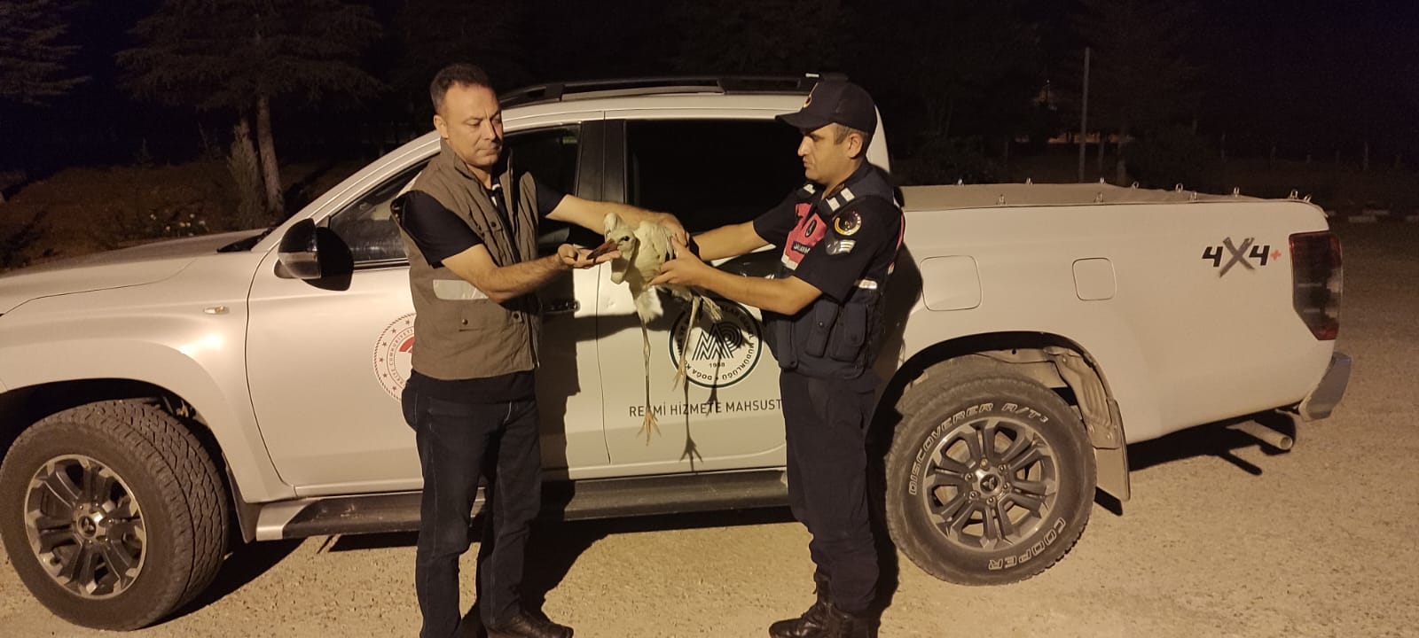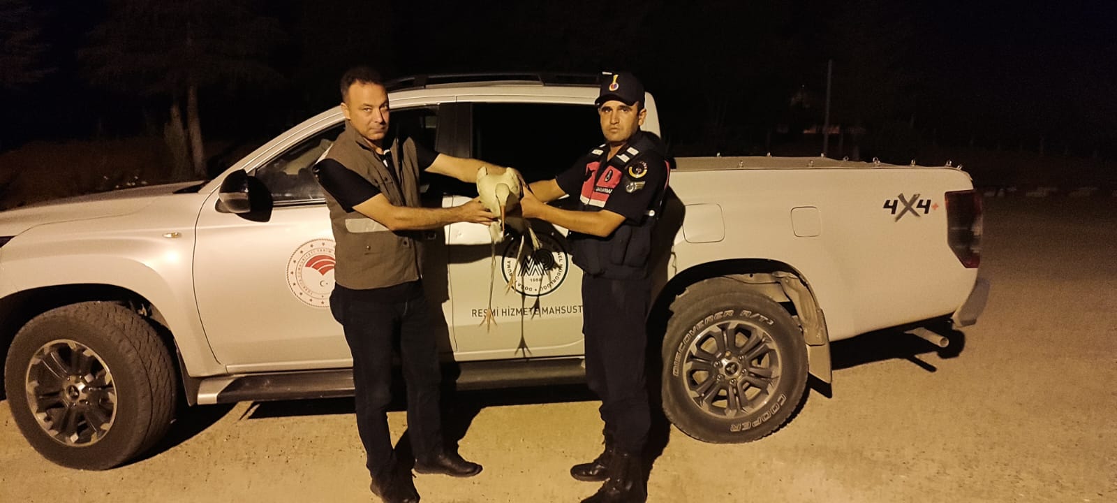 Yaralı Halde Bulunan Leyleğin Tedavisi Yapılması Amacıyla Doğa Koruma ve Milli Parklar Şube Müdürlüğüne teslim edildi.