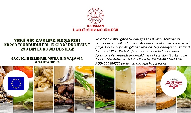 Karaman İl Millî Eğitim Müdürlüğü Ar-Ge Birimi tarafından hazırlanan ve Hollanda Ulusal Ajansına sunulan uluslararası bir proje daha Avrupa Birliği’nden hibe desteği almaya hak kazandı.