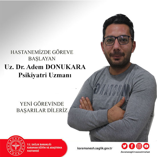 Karaman Eğitim ve Araştırma Hastanesinde Yeni Göreve Başlayan Hekimler Hasta Kabulüne Başladı.Karaman Eğitim ve Araştırma Hastanesinde, İç Hastalıkları Uzmanı Dr. Özge Özay'a, İç Hastalıkları Uzmanı Saadet Demet Çiçekbilek'e ve Psikiyatri Uzmanı Dr. Adem Donukara Hasta Kabulüne Başladı.