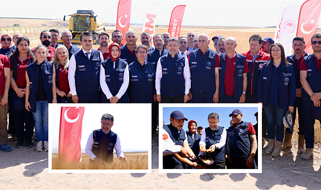 Tarım ve Orman Bakanı İbrahim Yumaklı, TAGEM tarafından geliştirilen yerli ve milli buğday çeşitlerinin Gölbaşı'ndaki hasat ve tanıtım programına katıldı.