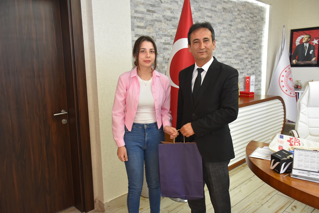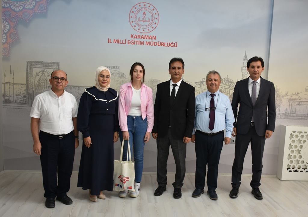 Danışman öğretmeni Esra Kaya Gökce ve Okul Müdürü Hasan Erkan ile birlikte Karaman İl Millî Eğitim Müdürü Mehmet Çalışkan'ı makamında ziyaret eden Özyer, projesinin detaylarını ve elde ettiği sonuçları paylaştı.