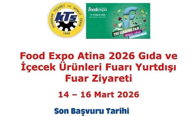 Karaman Ticaret ve Sanayi Odası (KTSO), 14–16 Mart 2026 tarihleri arasında Yunanistan’ın başkenti Atina’da düzenlenecek olan Food Expo Atina 2026 Gıda ve İçecek Ürünleri Fuarı’na yönelik iş ziyareti organizasyonu kapsamında başvuru süresinin uzatıldığını duyurdu.